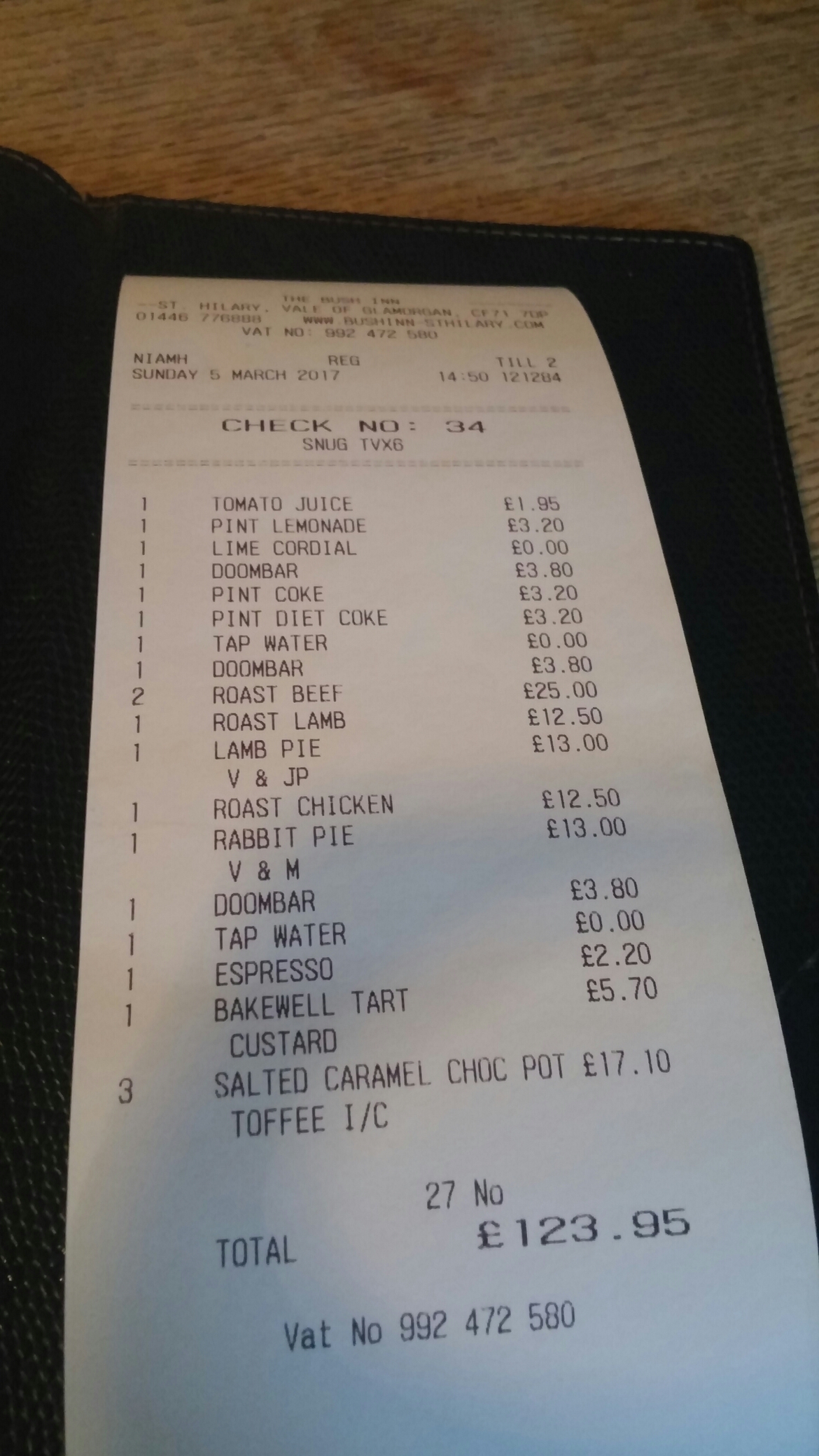 Price wise we paid a smidgen under £124 (without a tip, which we gave) for food and drinks (mainly soft in terms of the latter) for 6 people. Not cheap, but I though reasonable value