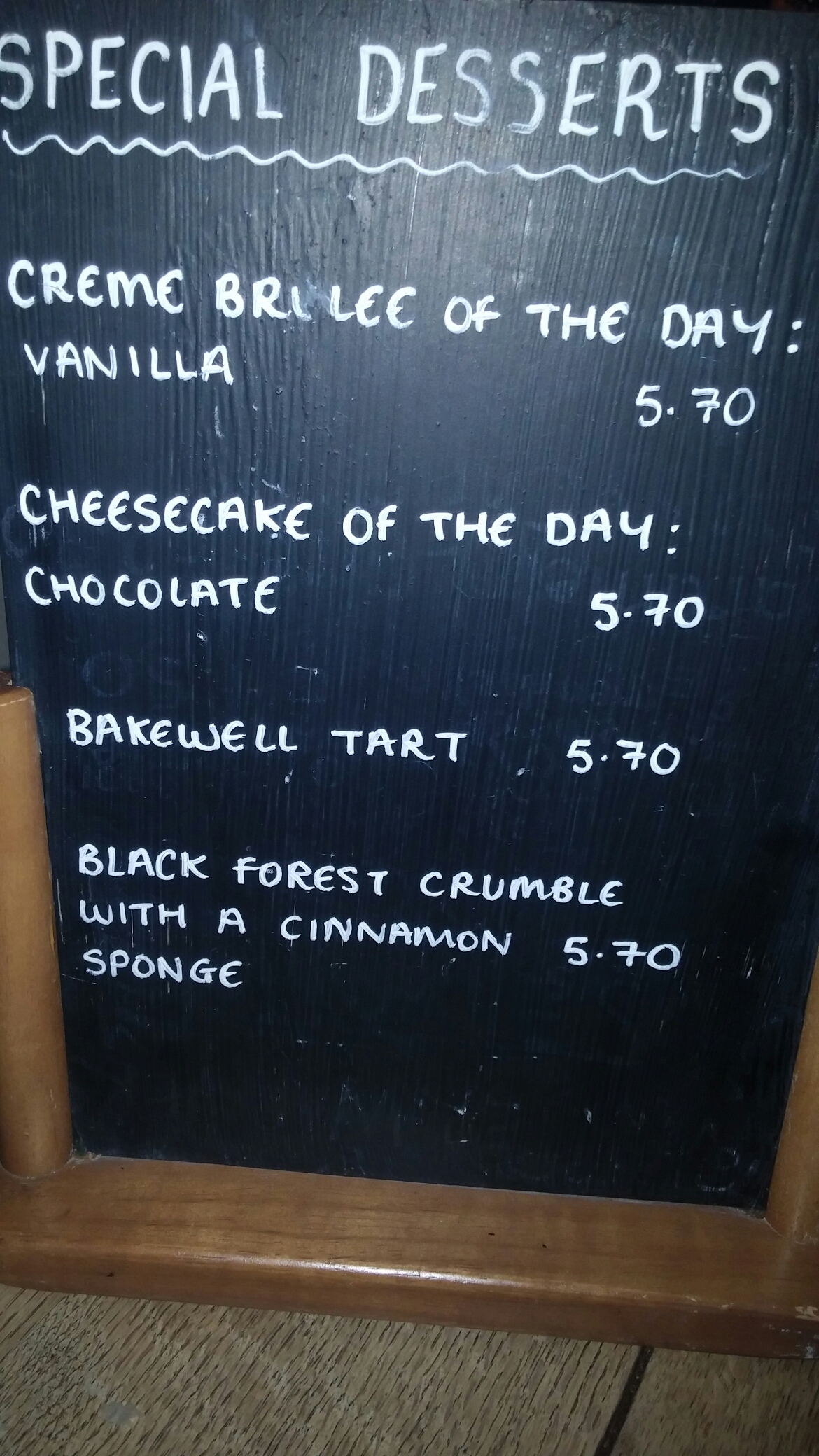 On the pudding front, they have a varied mix on offer of most people’s favourites (creme brulee, stickie toffee pudding, chocolate pots and Bakewell tarts to name but a few).