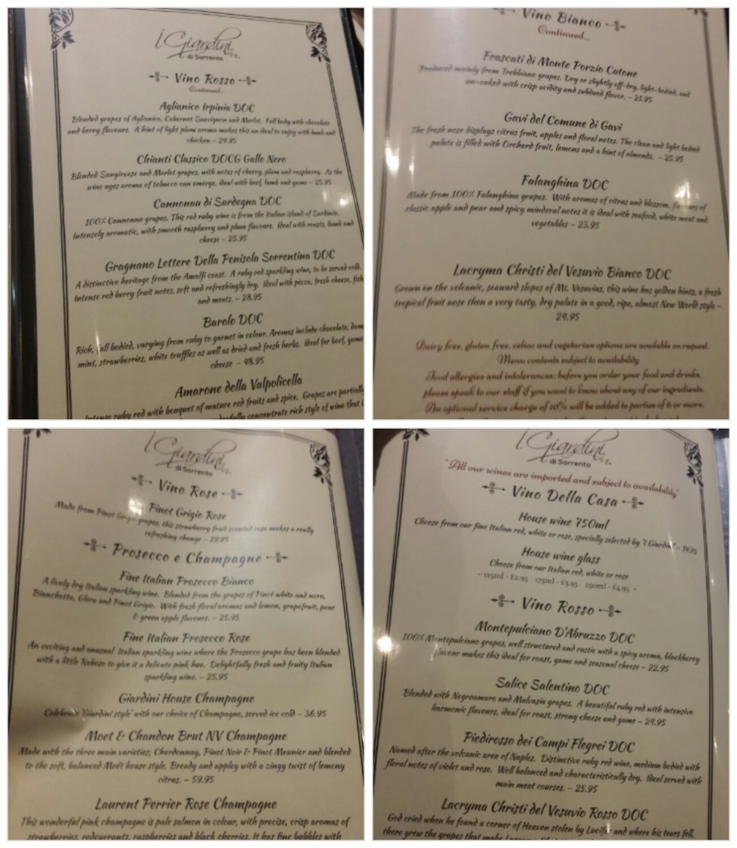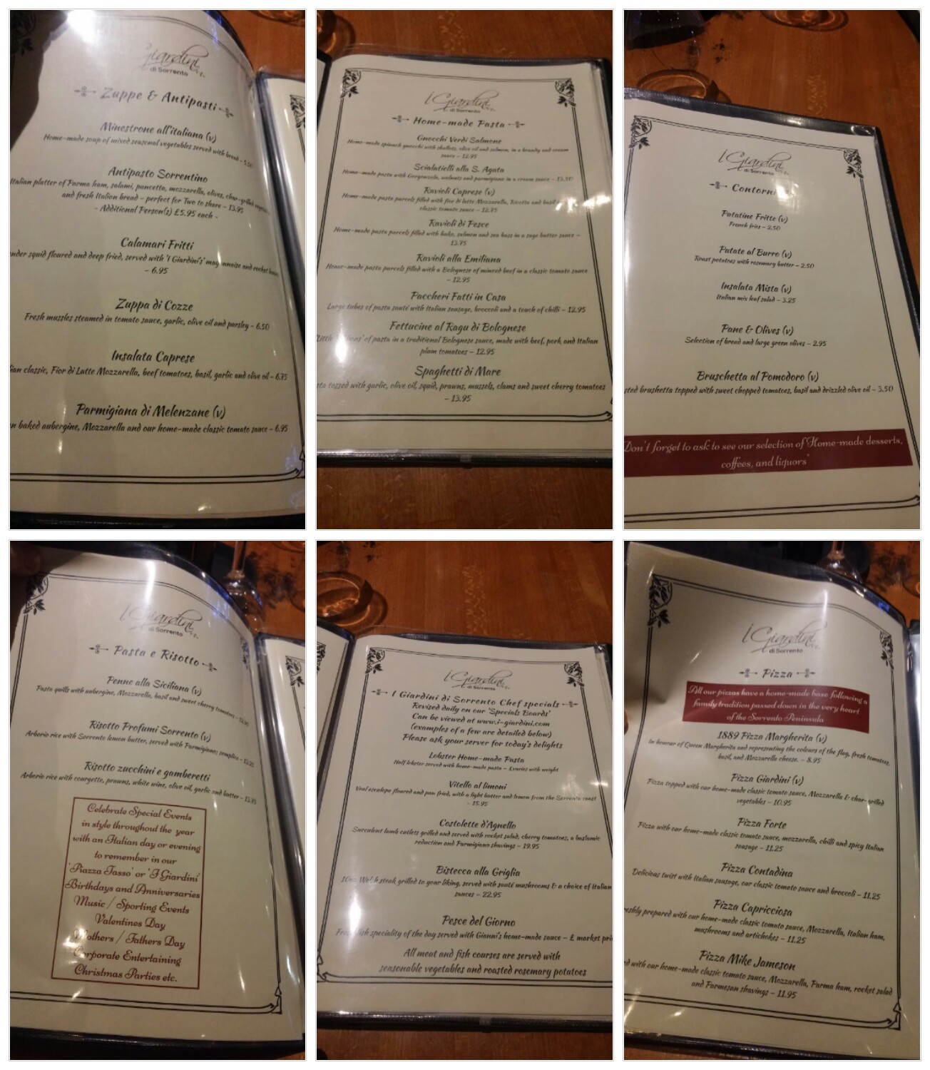 The menu is not ridiculously long and seems (in line with their strapline and name) to focus (although not exclusively) on Campania (the region of Italy in which Sorrento is located). Lots of references to Sorrento’s famous lemons, for instance.