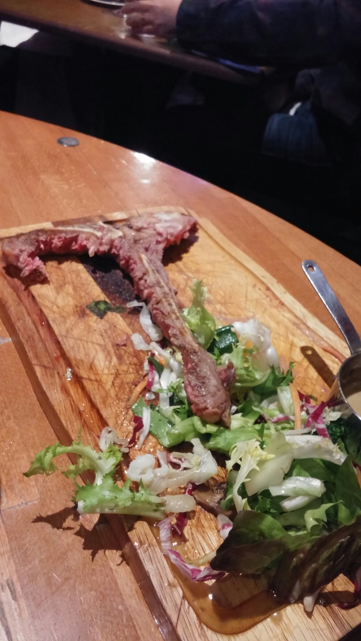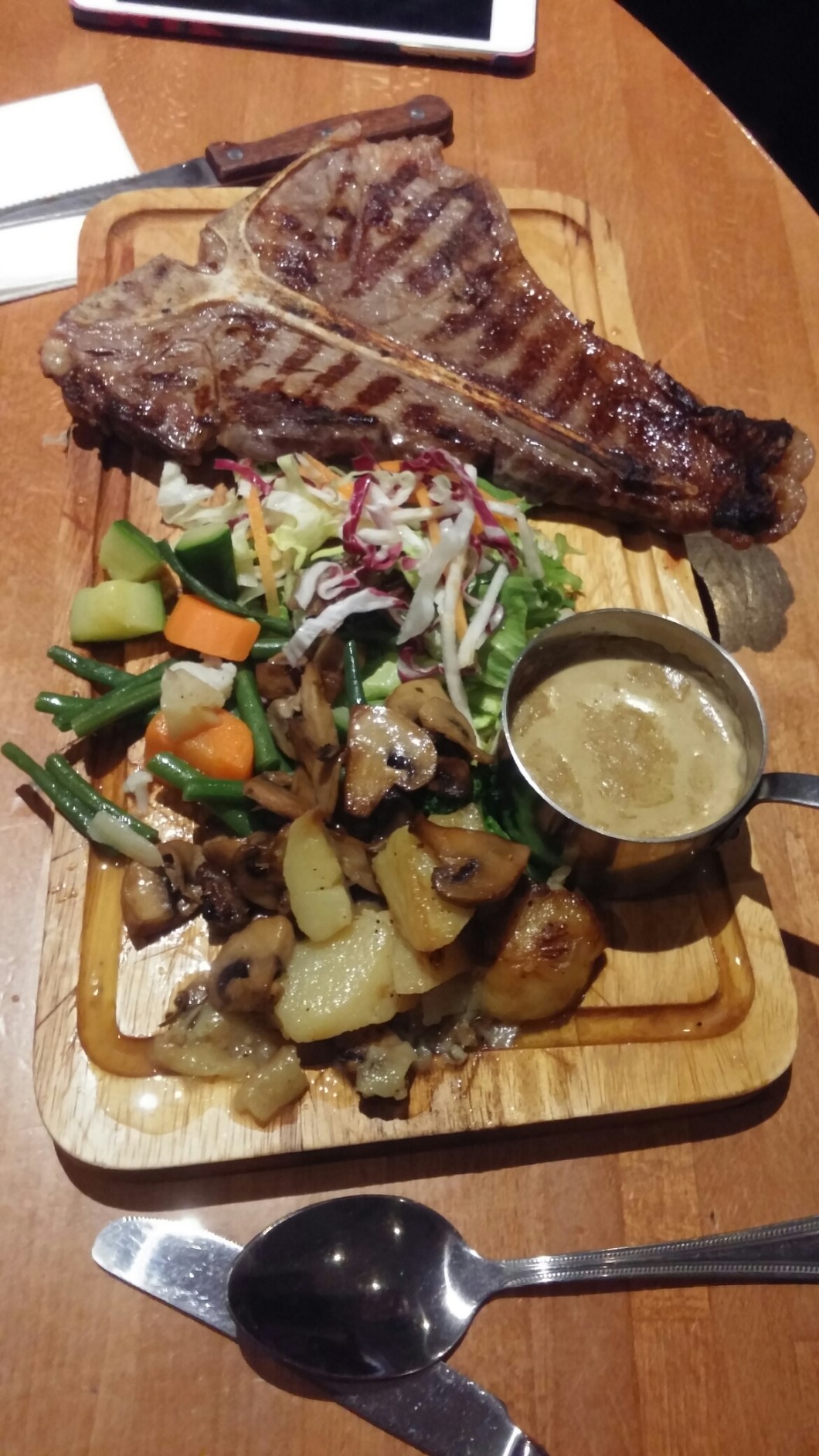 Of the specials, my friend spied and immediately decided on the 16oz t- bone steak (£26.95) on the “Specials” board. What arrived looked very good (chopping board aside – which the steak over hung – much prefer a plate to be honest). It was a tender, well flavoured piece of meat – cooked “medium rare” as requested.
