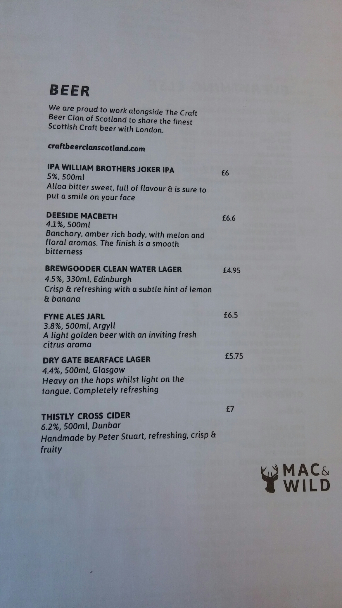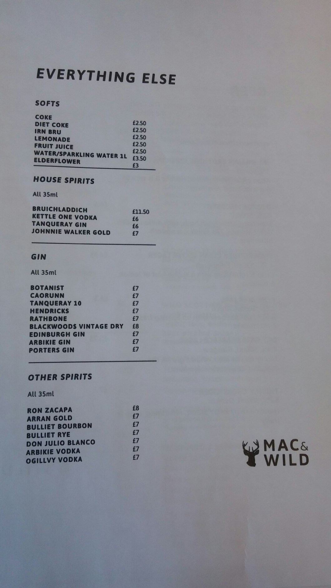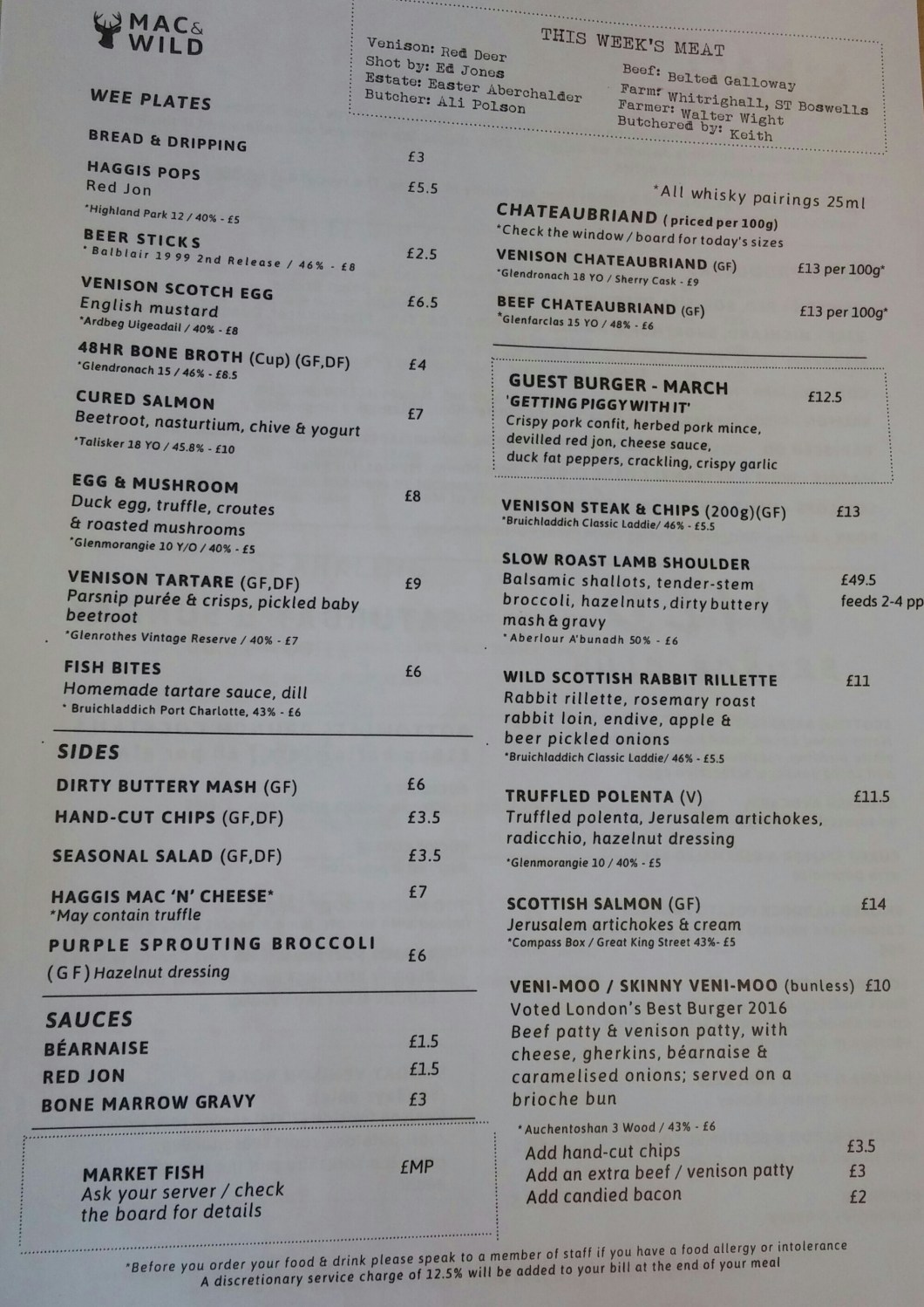 Whilst sorely tempted, based on the wider offering on the menu, to have a full blown three course meal (the haggis pops and venison chateaubriand seriously appealed, as did the venison steak with chips which looks very good value at £13)