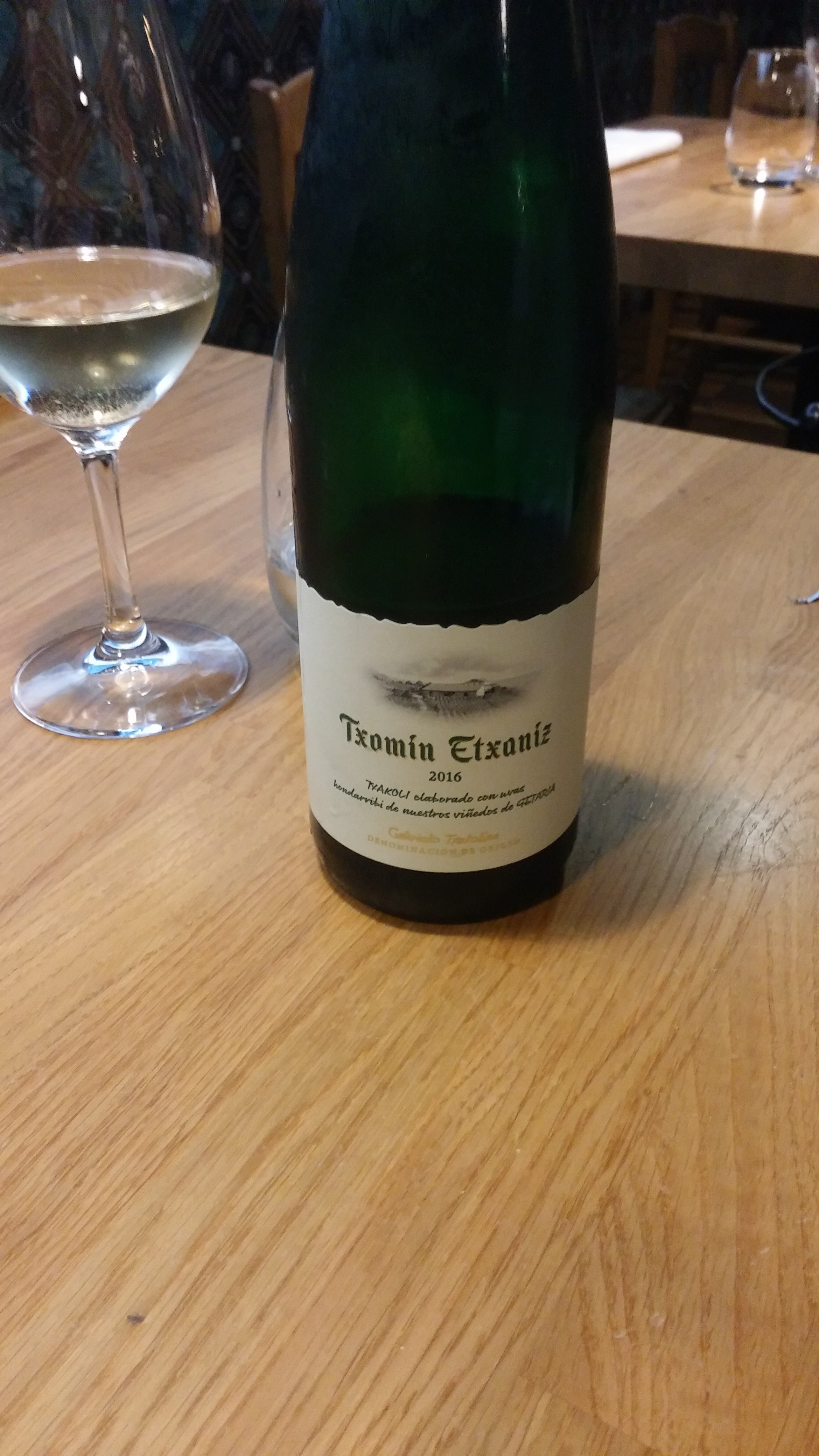 I decided to go with a “when in Rome approach” and ordered a Txomin Etxaniz Txakoli and Lanzaga 2010 Rioja (both wines from the Pais Vasco region of Spain).