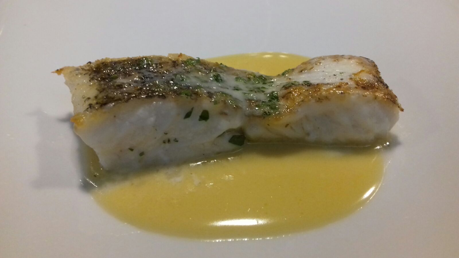 On to the fish course, we were presented with a perfectly cooked bit of hake with an intense lemon vinegarette (more like a hollandaise we thought)
