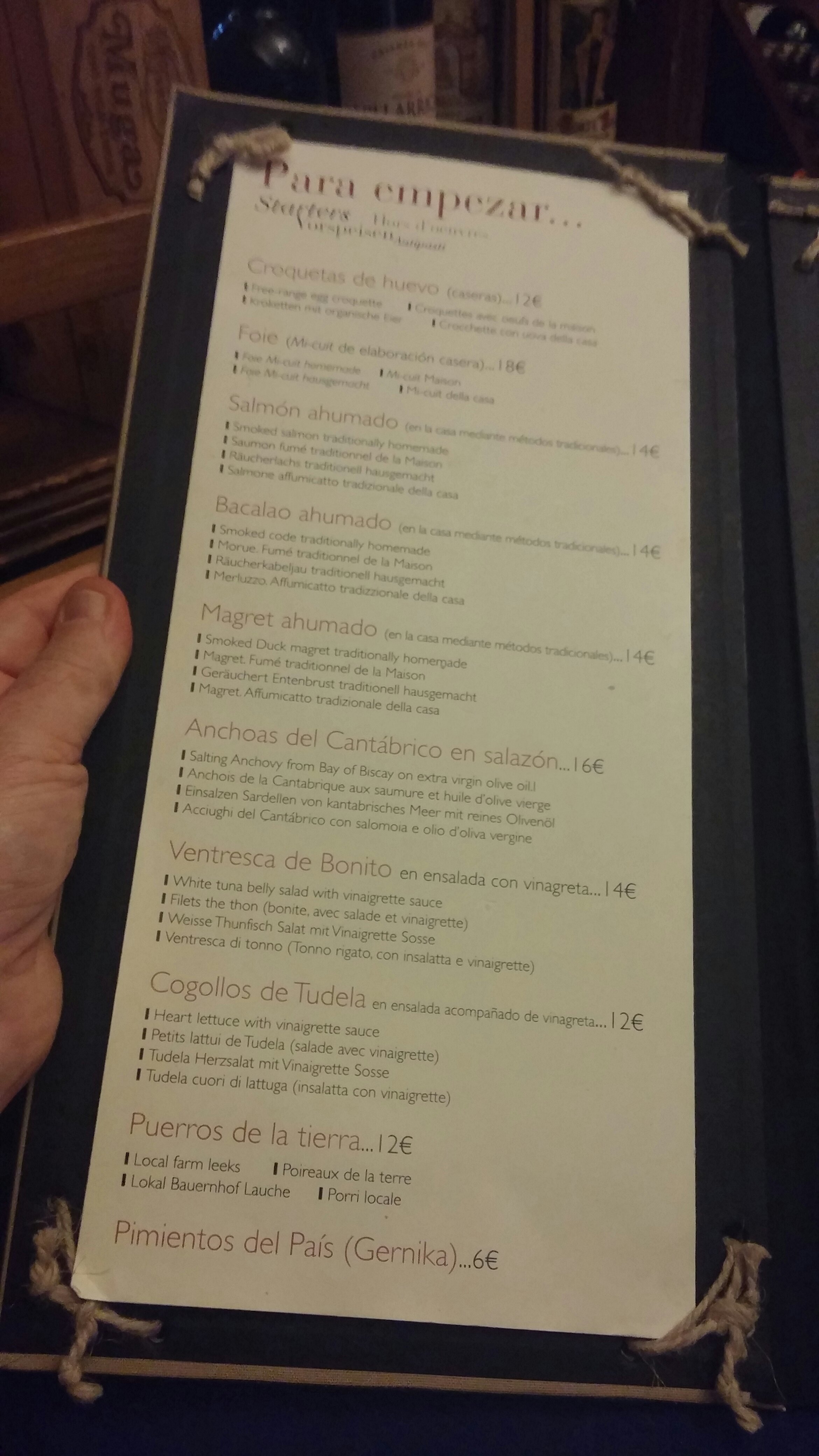 After a week of gorging ourselves on pintxos in Donostia San Sebastian and Bilbao, Mrs. SF, my sister, her husband and I fancied something more substantial in the form of a full on sit down meal.