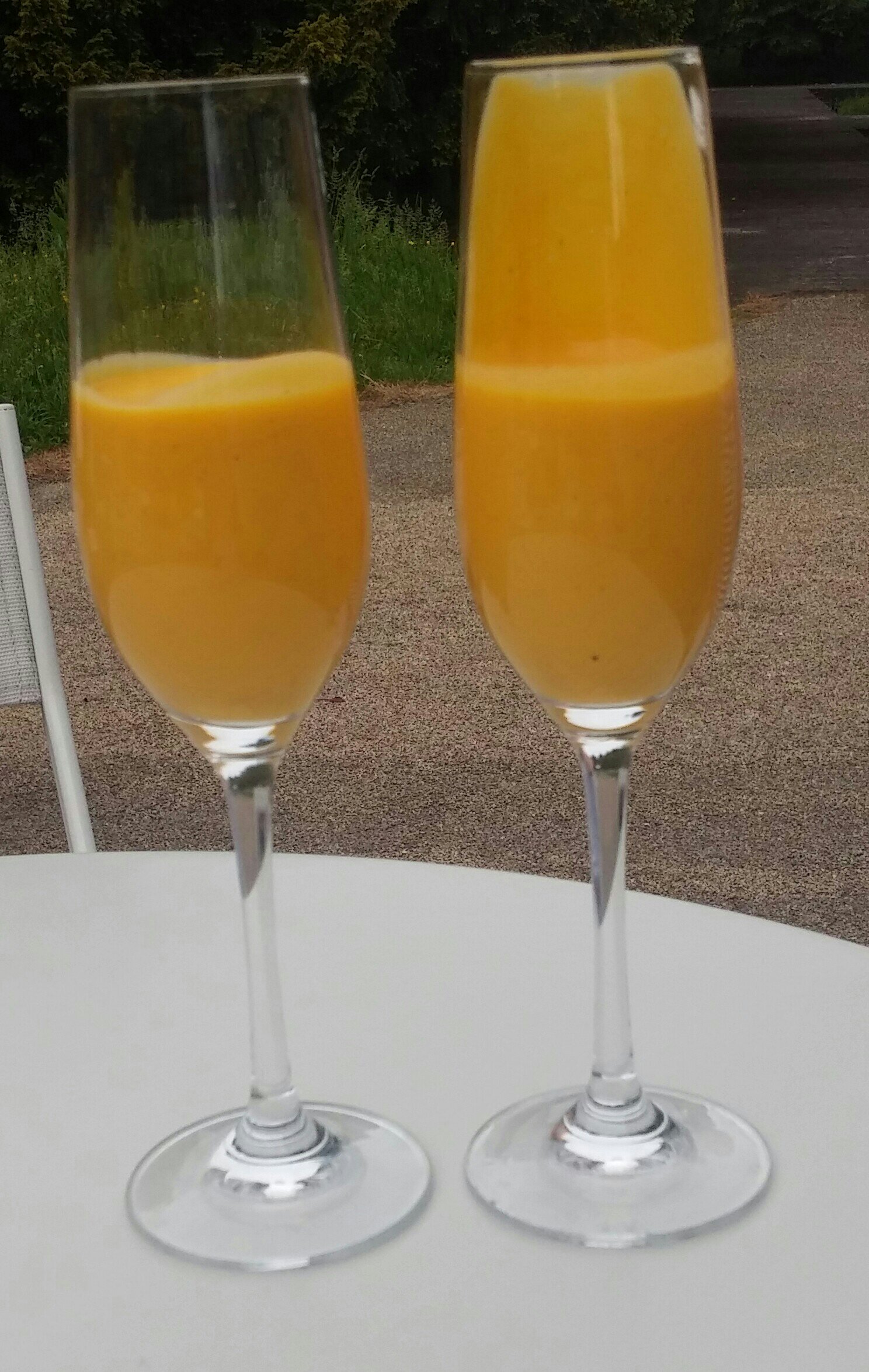 The use of flutes did make it rather difficult to drink as it was quite thick. Perhaps wider rimmed glasses and straws next time.