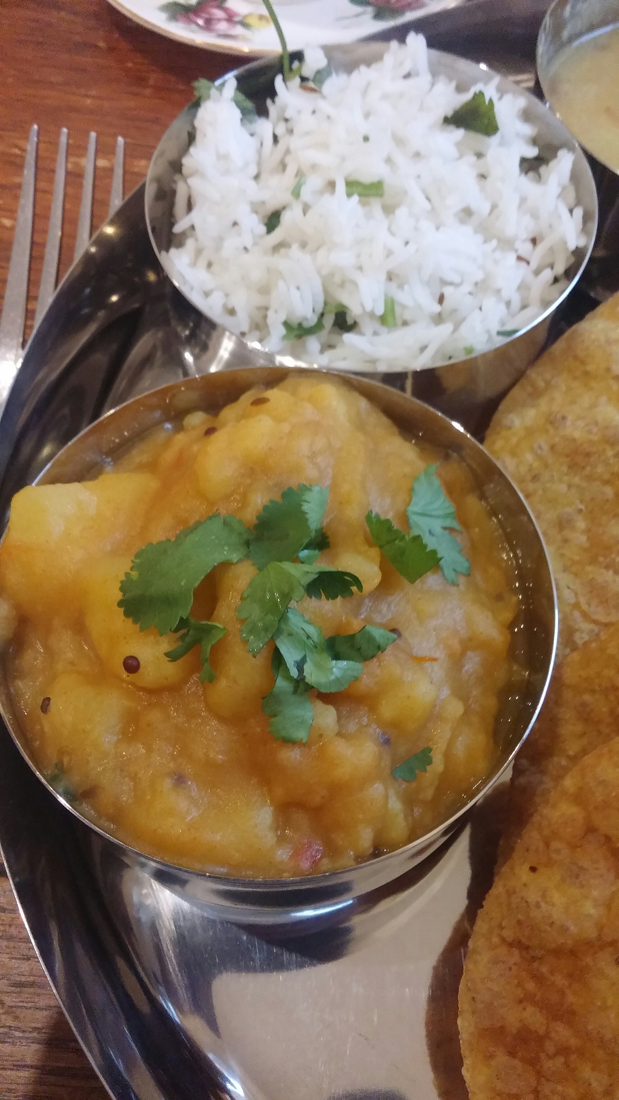 On to the main event, the principle behind a thali is to achieve a balance of flavour across the array of taste sensations. So it usually had a combination of dishes that cover salt, sweet, sour, spicy and bitter.