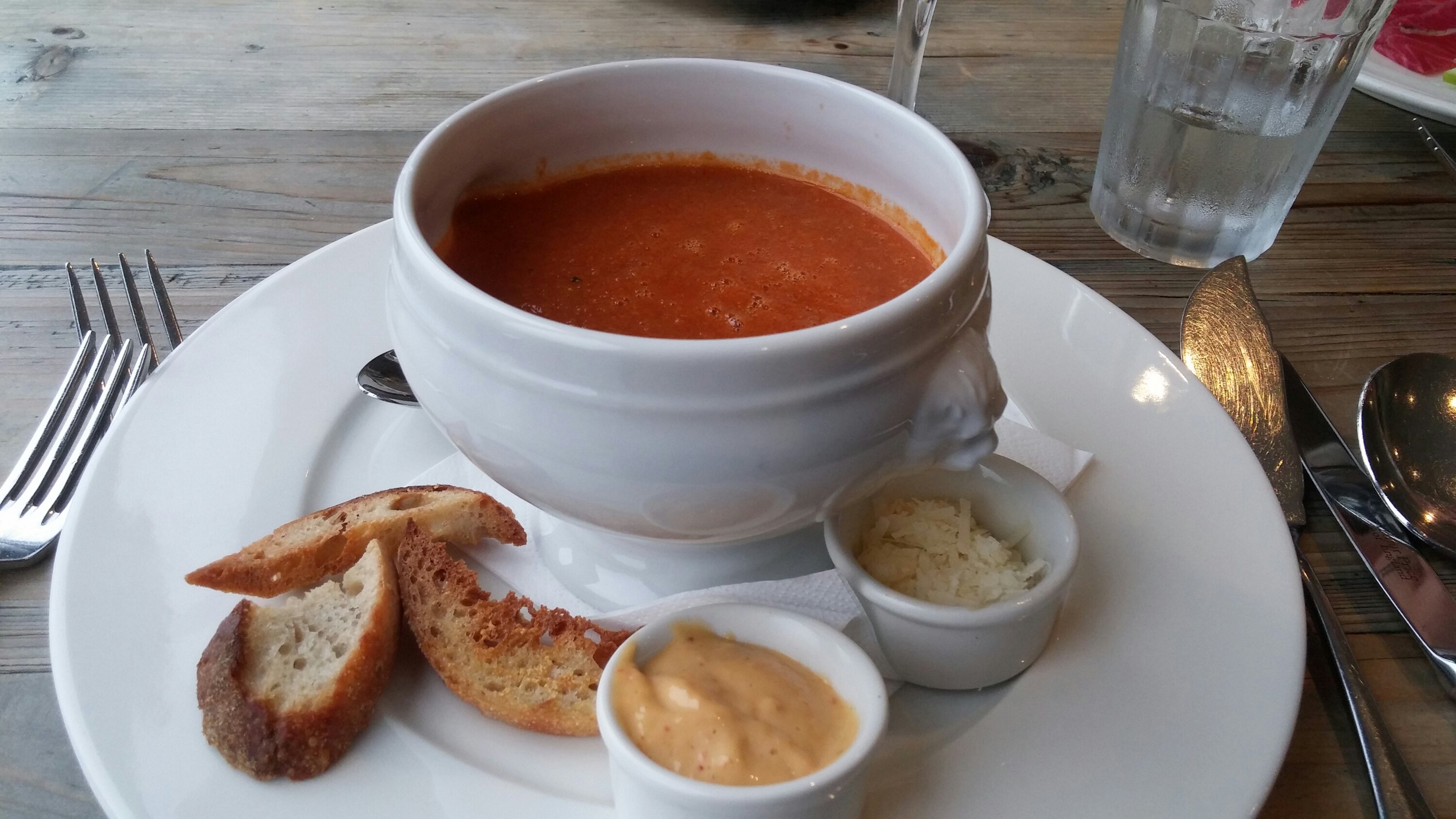 For starter I was torn between the mackerel fillet and the fish soup. I plumped for the soup as I think a fish soup is a good test of the mettle of a kitchen which specialises in fish. If it gets fish soup right you are in safe hands for other fish dishes, but if they bugger up the soup you know you are in trouble.