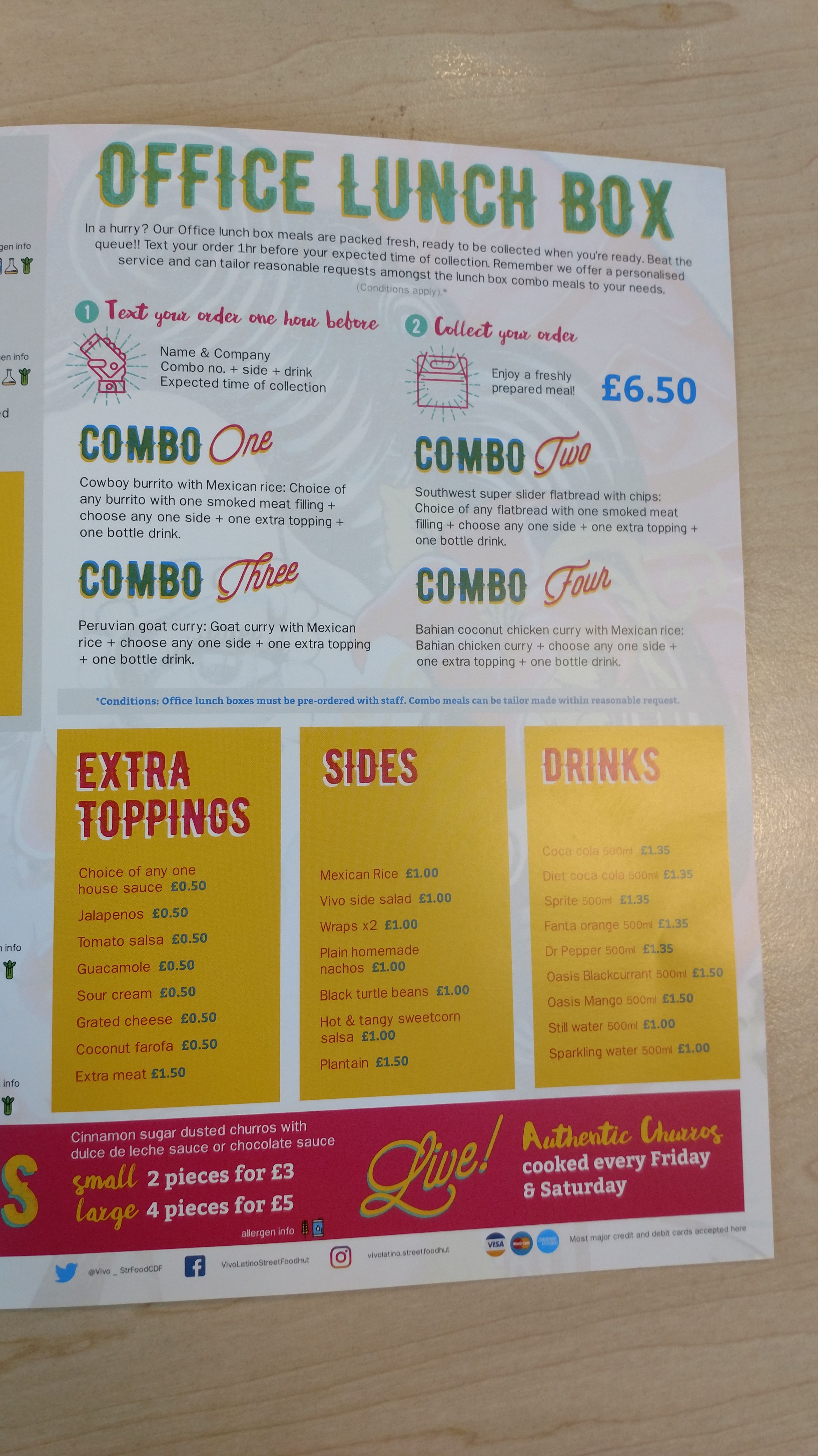 I like the idea of the ” Office Lunch Box” (which is a main order, a side and a drink for £6.50) which allows you to order in advance by text with your ETA for pick up.