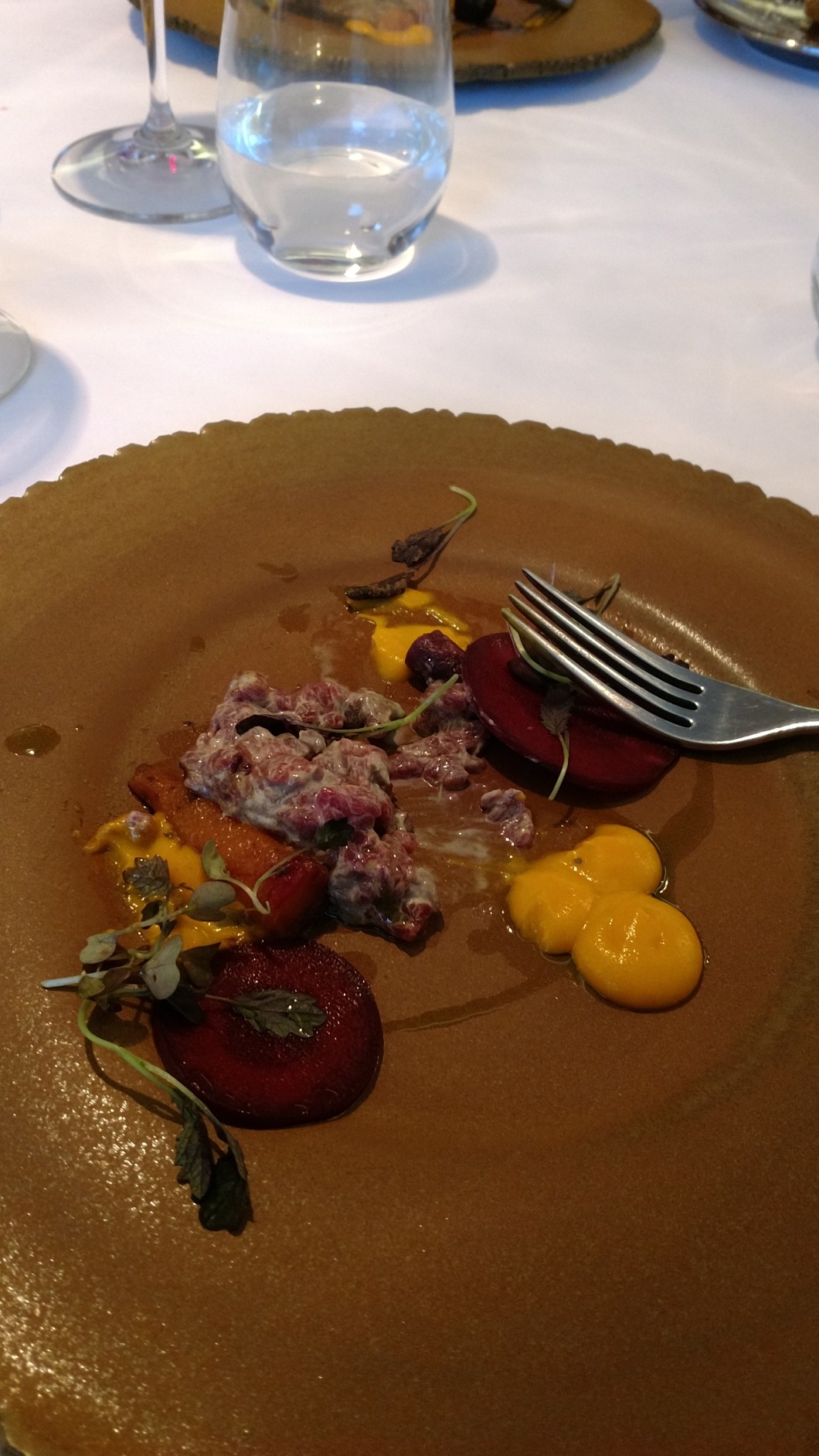 Next up (much to my friend Fraser’s horror, who likes his meat nuked and then baked on the surface of the Sun to a carbonised crisp) was a venison tartare (I ate his, as based on the look on his face he would have rather eaten the plate than the tartare).