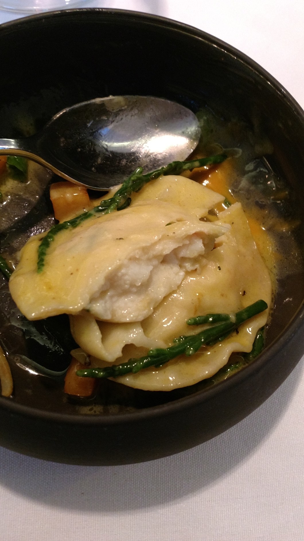 Beautifully thin and perfectly made pasta encompassed a very generous amount of lovely, sweet, langoustine meat.