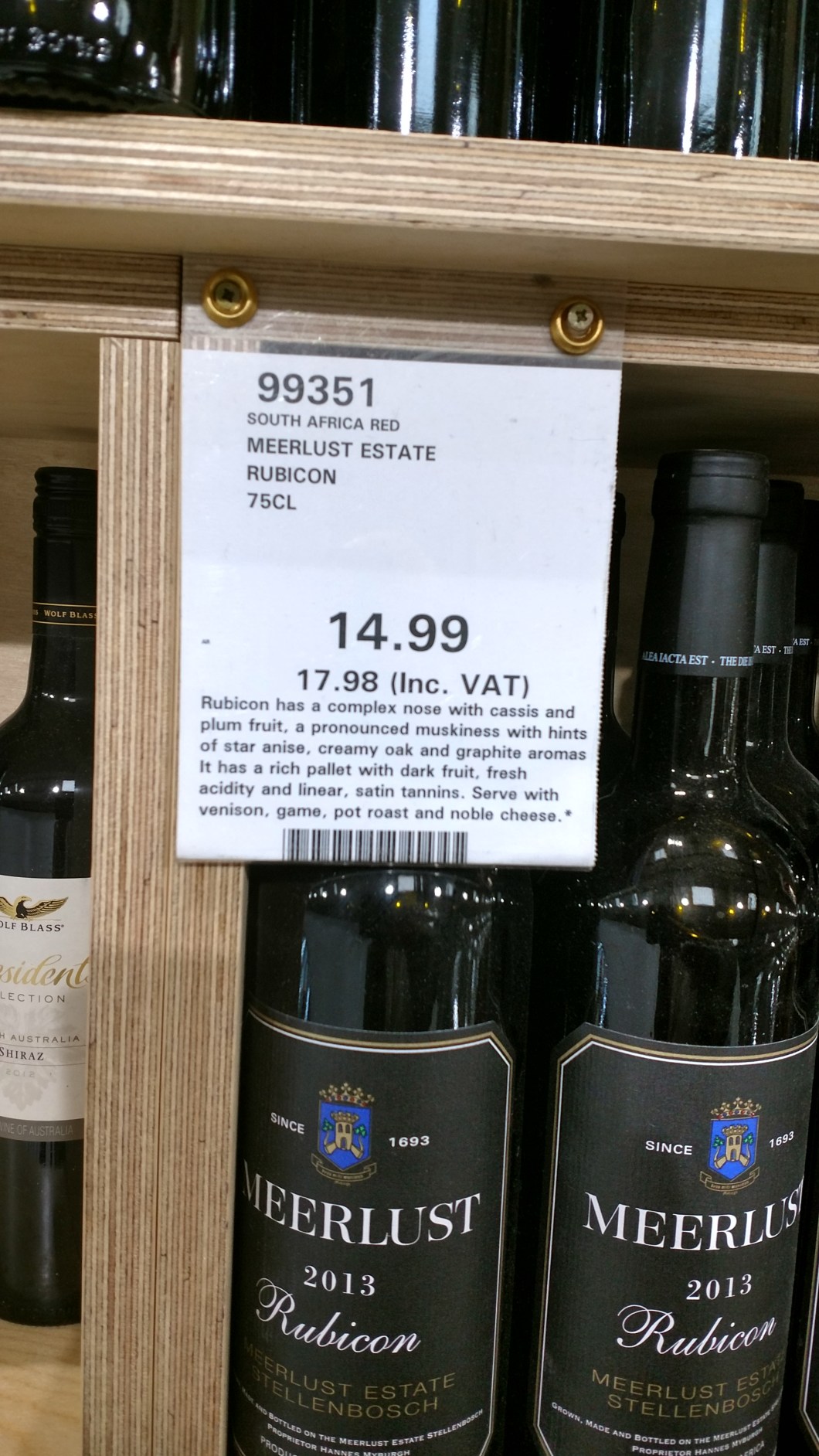 Mark ups on the reds are particularly aggressive (Meerlust Rubicon 2013 retails in Costco for a smidgen under £18 – great wine for that price – but the 2008 is £87 on list here and a Chateau du Pez 2009 is on the list here at £124 when it retails at around the £40 mark) which is a shame.