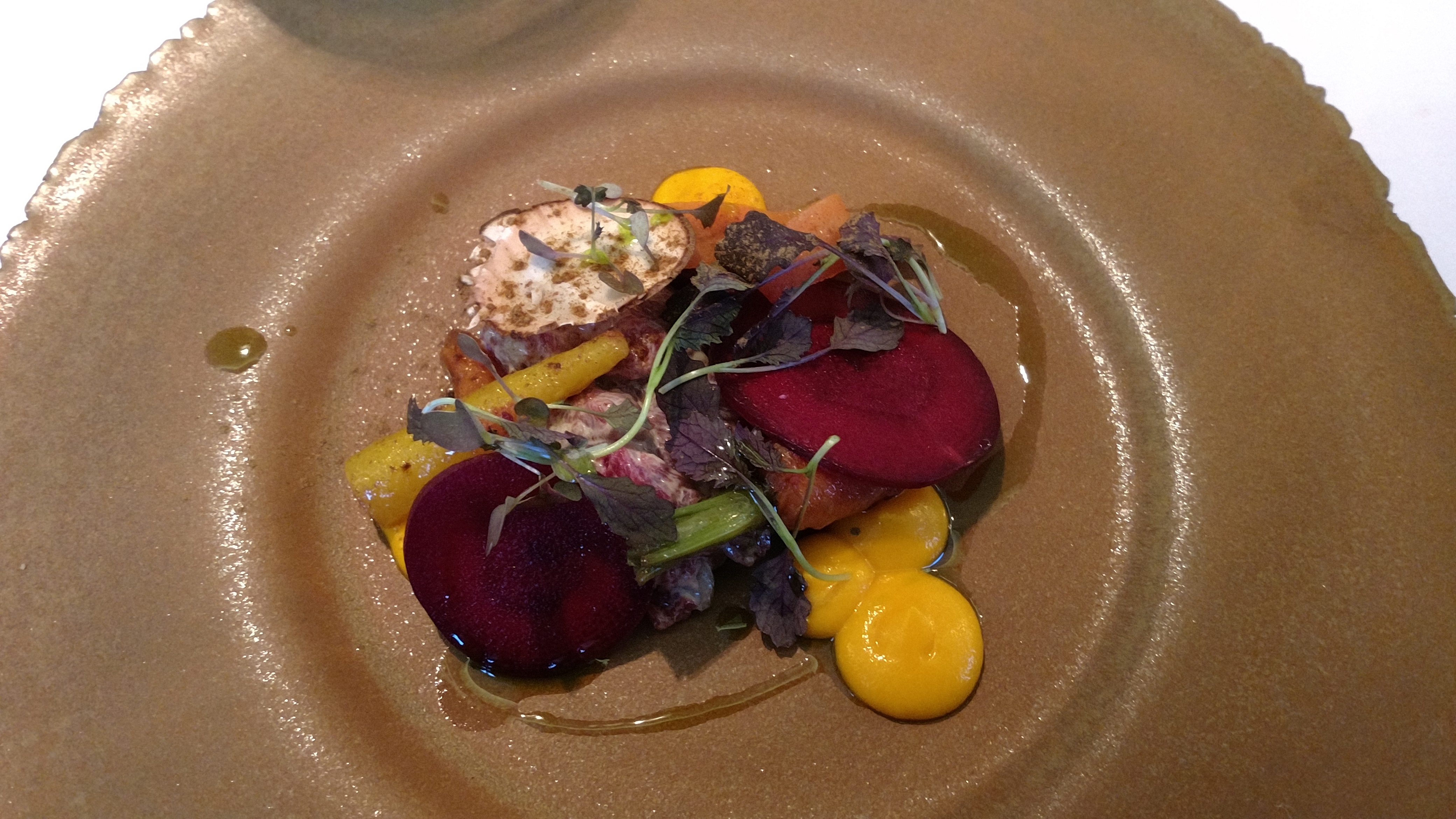 Pretty as picture with flavours to match, the gaminess of the venison was complimented by earthy discs of beetroot and mushroom and the sweetness of carrot (in baton and puree form).