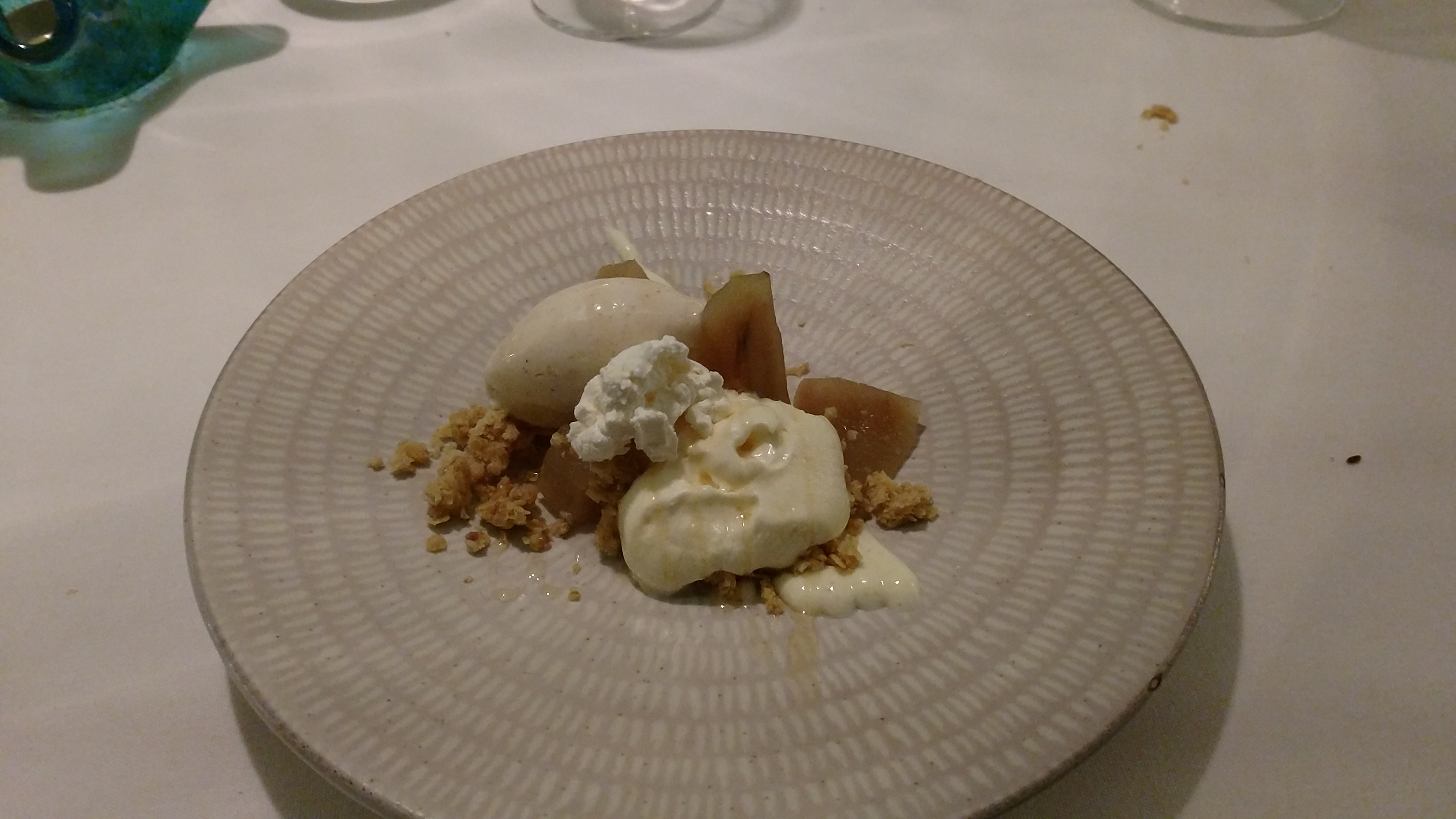 The final course was a sort of tarte tatin. Nicely caramelised, yielding, apples with some lovely flaky pastry made for a very pleasant and surprisingly light end to proceedings. Very welcome after what was quite a big meal.