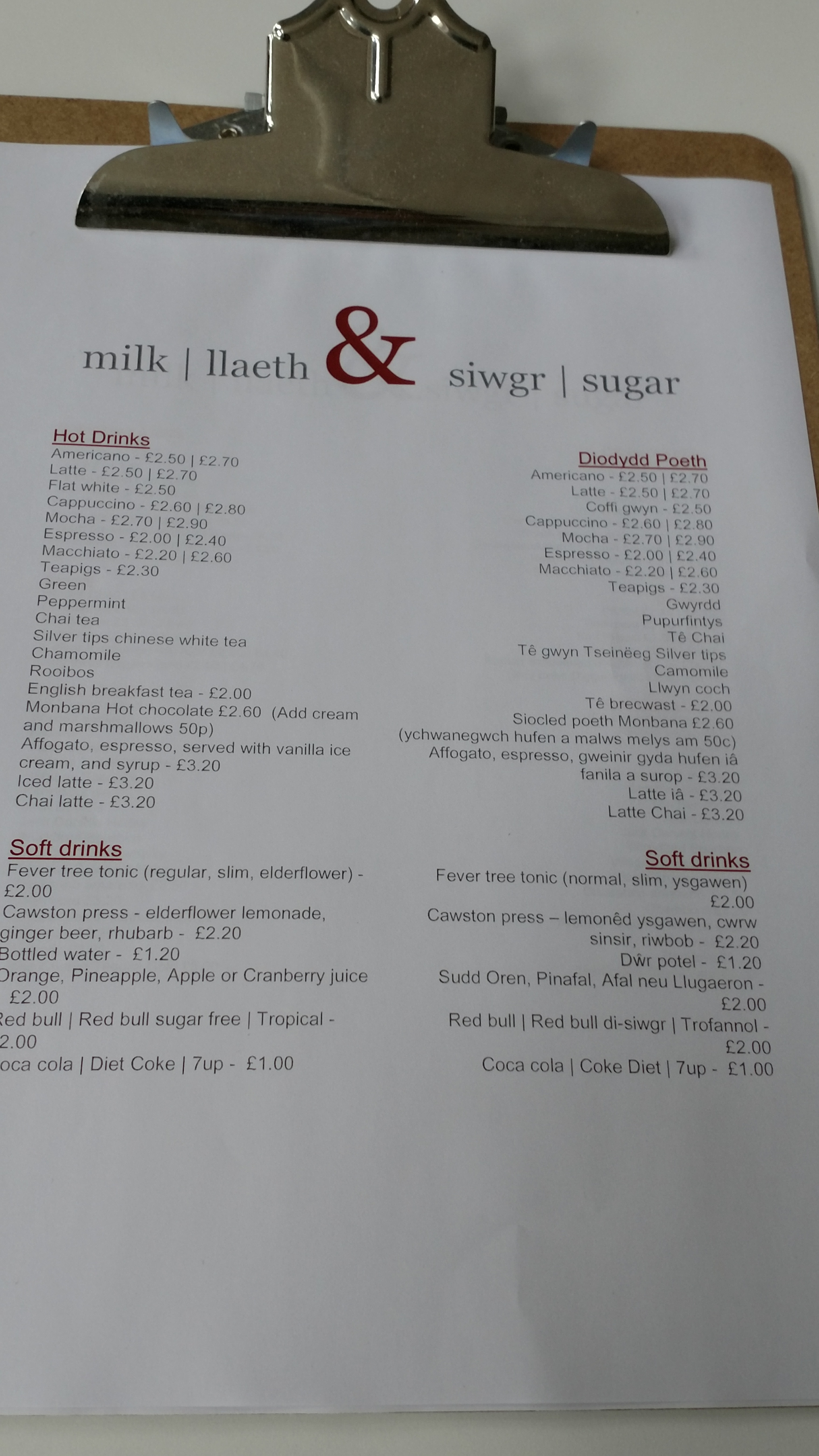 On the drinks front it is nice to see a selection of both soft and hot drinks at reasonable prices.