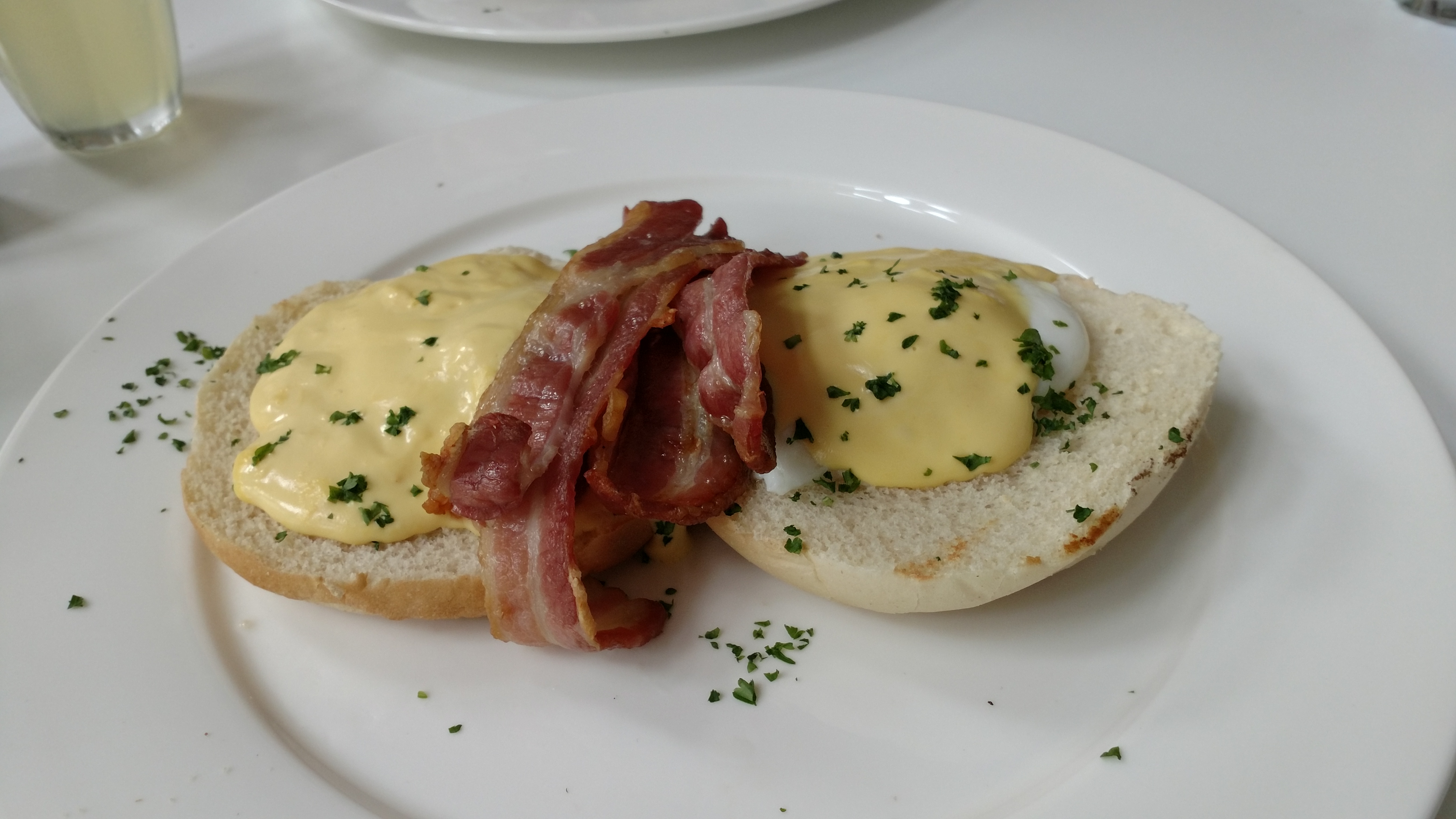 Whilst tempted by both the sarnies and salads on offer, I love a good eggs Benedict (loath a crap one). I tend to think a poached egg is a good test of a kitchen’s mettle. If they nail it then you know you are in good hand, but if they bugger it up it is time to close the book on the place.