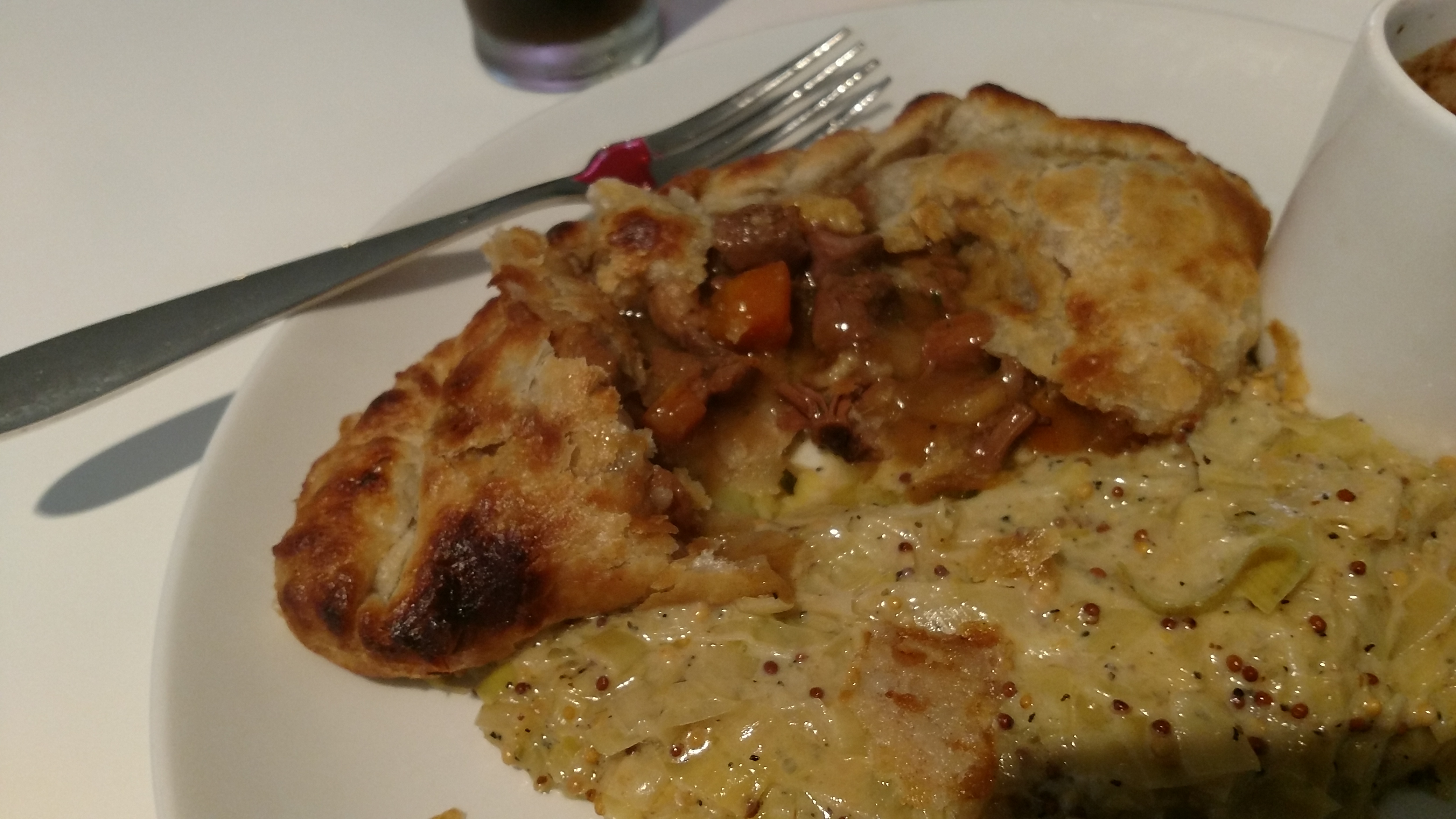After much indecision, I decided on the double Welshness of Welsh lamb and mustard creamed leeks of the “calzone” dish.