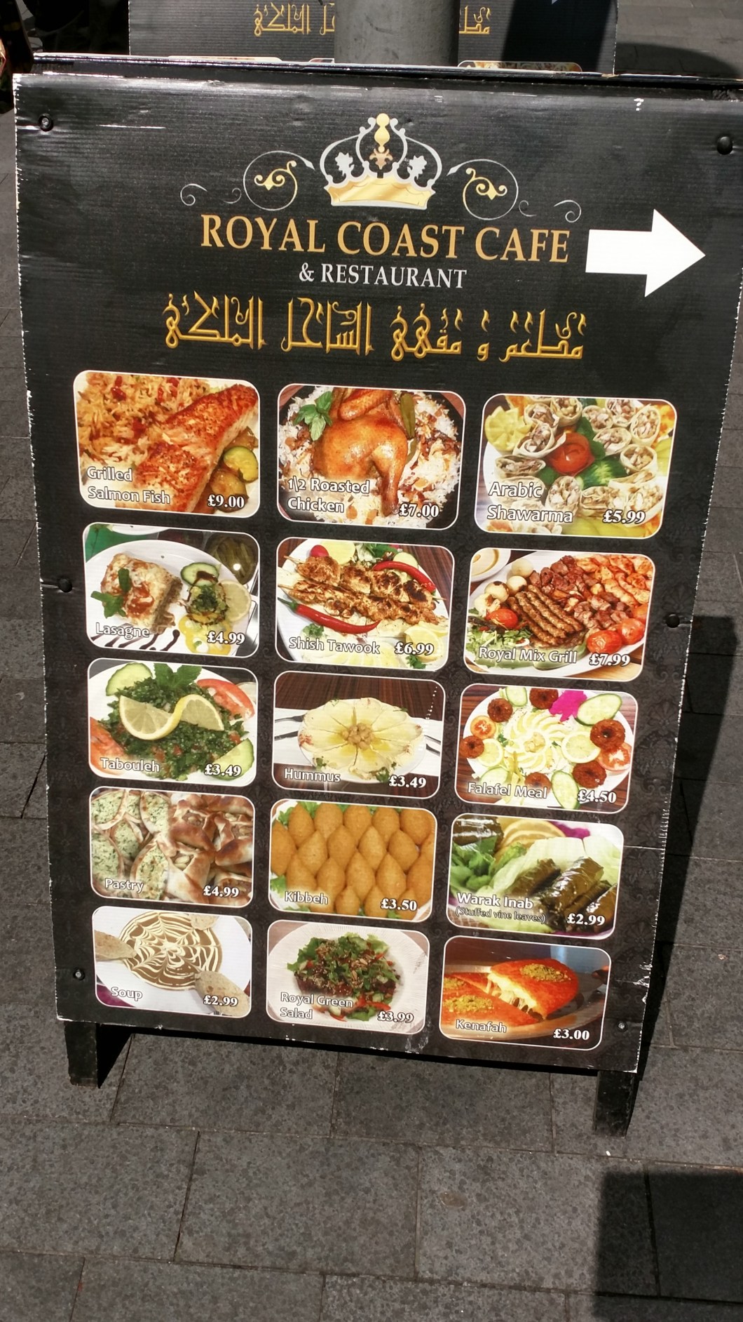 On this basis, I was intrigued by a sign I saw on Queen Street (pointing down towards Charles Street) indicating Middle Eastern food including Shawarma (akin to the Turkish doner or a Greek gyros).