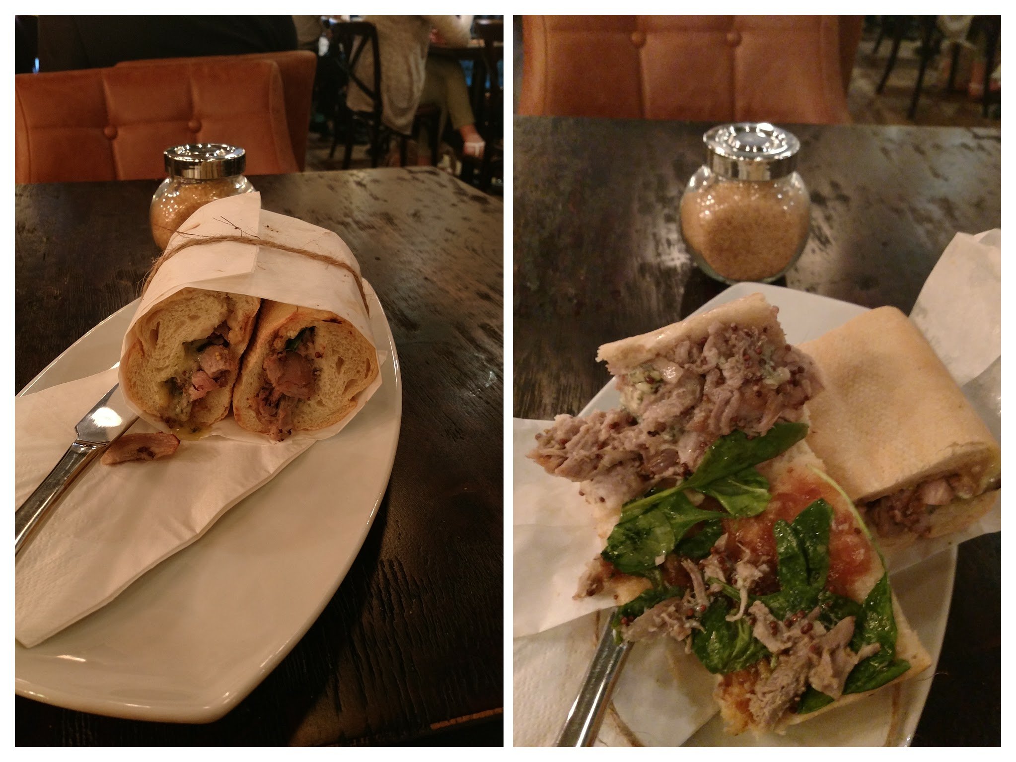 Other fillings on offer included a veggie one (roasted aubergine, lemon, basil, tomato, pumpkin seed and black pepper hummus) and a very appealing sounding meatball, provolone and creamy mushroom number (I would have probably gone for that had I clocked it before I ordered the pulled pork one).