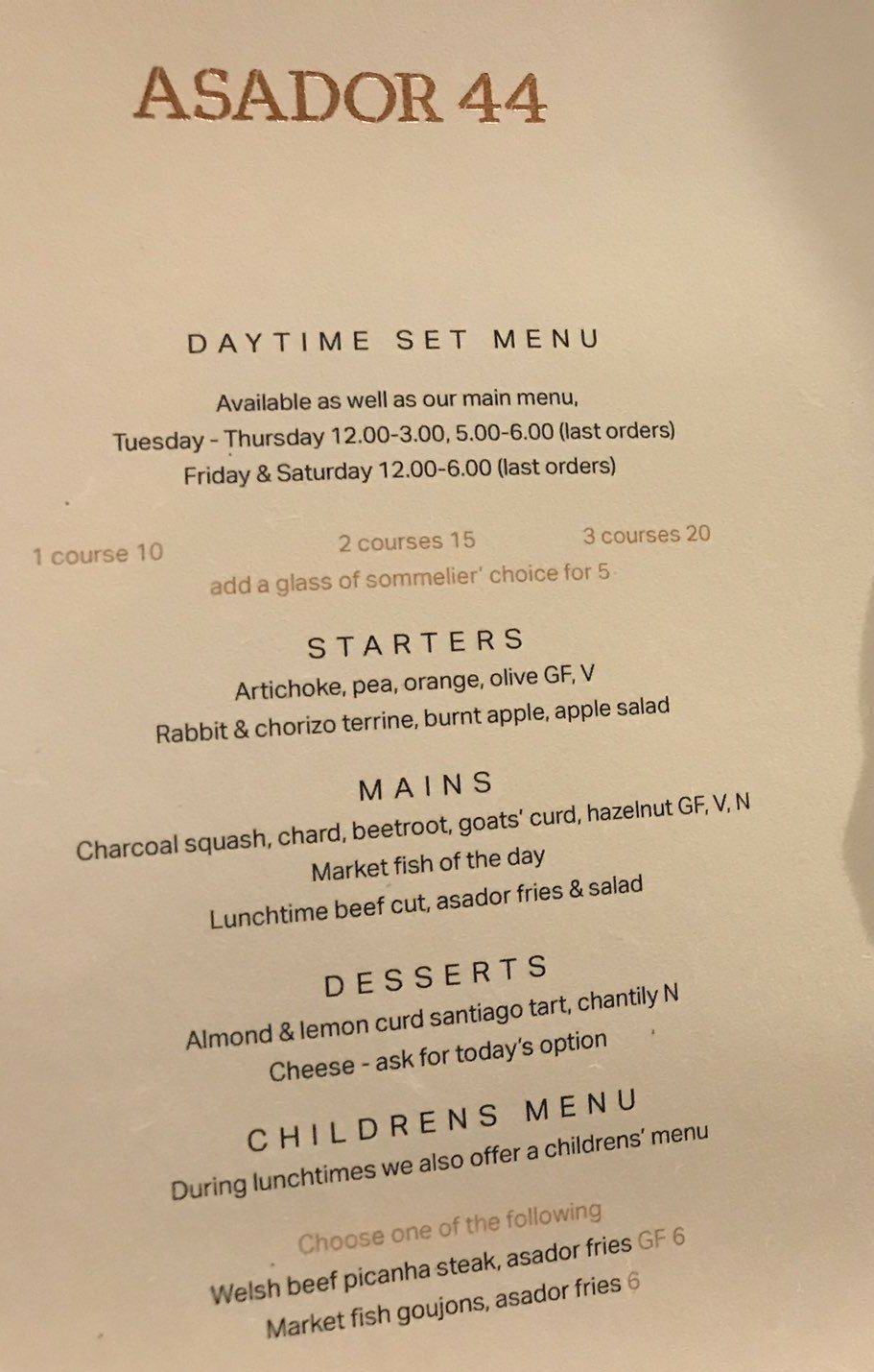 I love this place for lunch and a most welcome feature is that the offer extends to Saturdays – bravo Asador 44 for that. I defy you not to be a happy bunny after eating lunch here.
