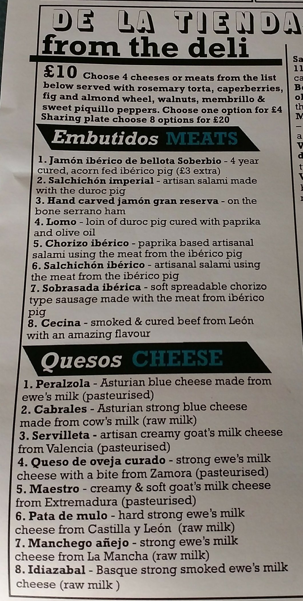Spanish gins, beers and wines. There is also a good selection of soft drinks, if not drinking booze ( I had a coke on my last solo lunch time visit as it was mid week).