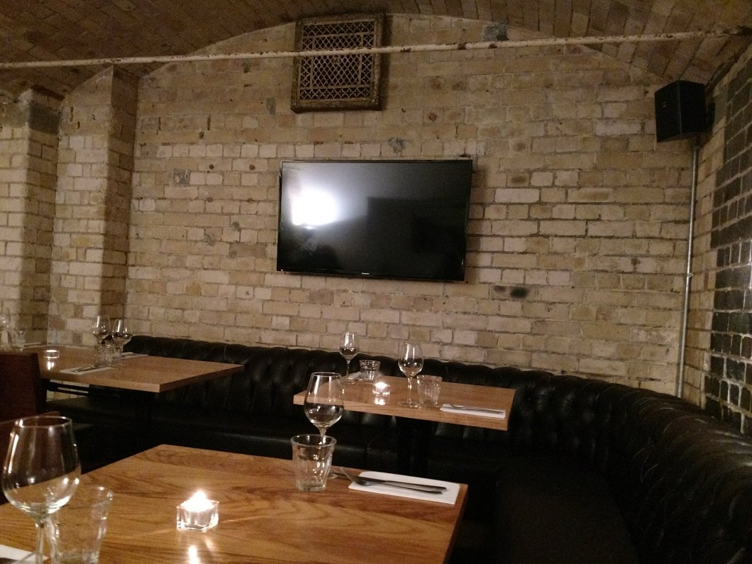 A somewhat unobtrusive doorway and stairwell leads down to a rather pleasant vaulted cellar dining area in a restaurant that serves up some rather fine lunch time fodder.