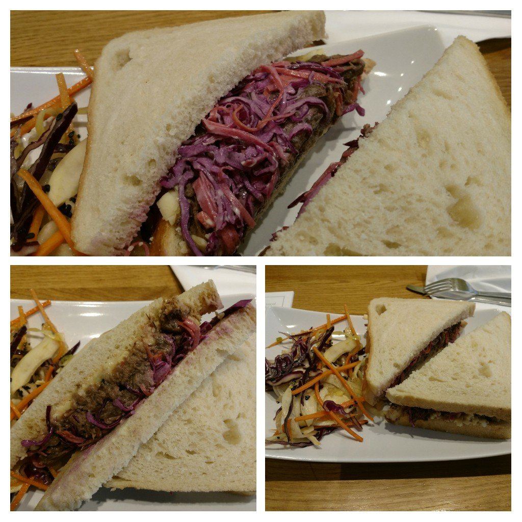 Very decent sarnie this. The brisket had a deep rich umami packed flavour to it and was melt in the mouth tender. Good meat to braising liquor ratio and there was no hint of dryness to the meat (which can blight brisket). Very generous filling which got in my newly grown beard (big draw back of a beard as far as I can see is its ability to drawn in food titbits – at times I feel like the Radagast character from the Lord of the Rings books not the one in the truly rubbish films of the Hobbit – how can you make 3 tediously long and crap films out of such a short but good kids book – this is from a big LoR fan).