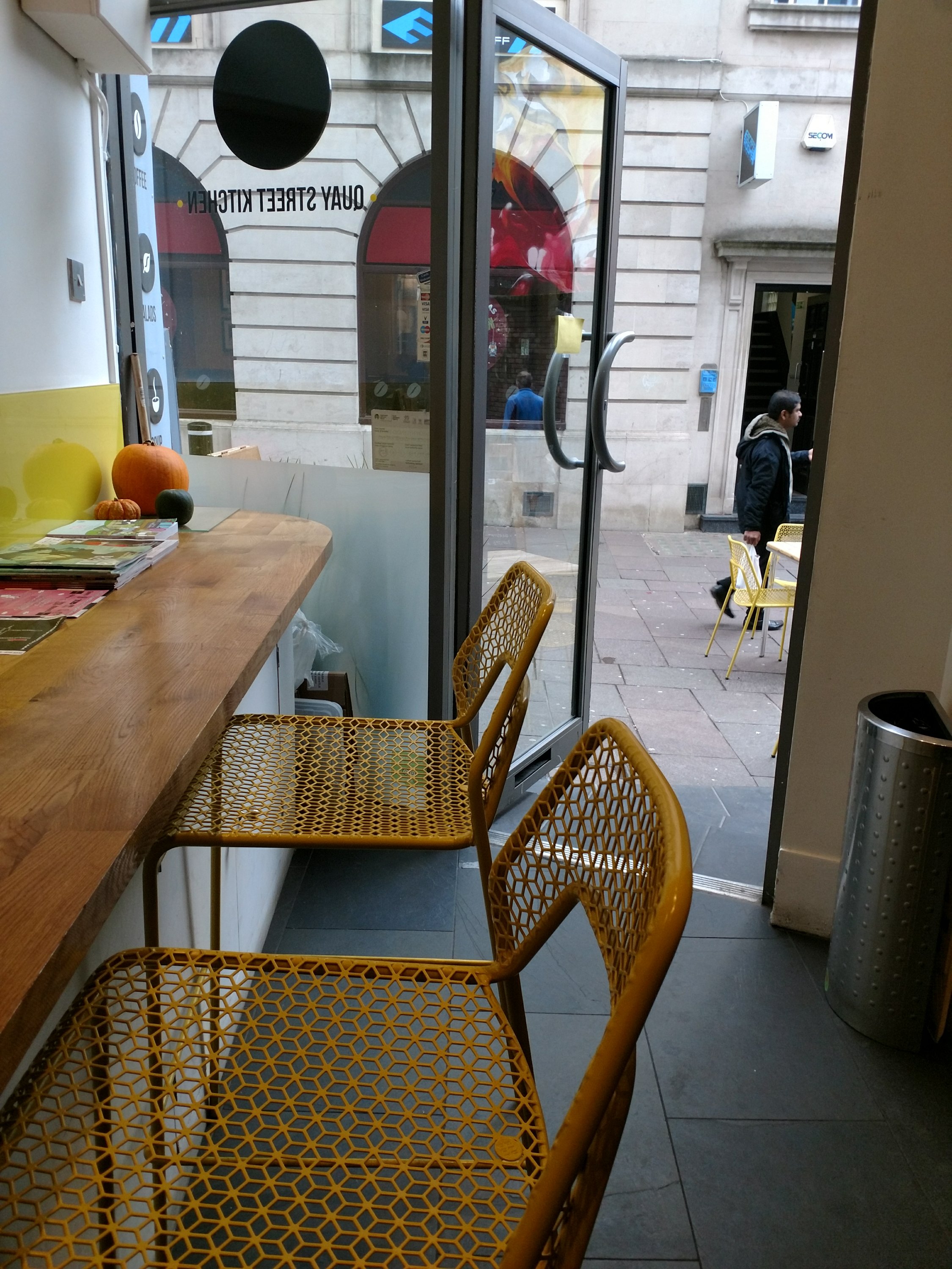The food is sarnies, salads and soups, but you are looking at a cut well above you standard supermarket/sandwich bar fare. Quay Street Kitchen, to my mind, sits at the more upmarket end of the sarnie spectrum in the City Centre.