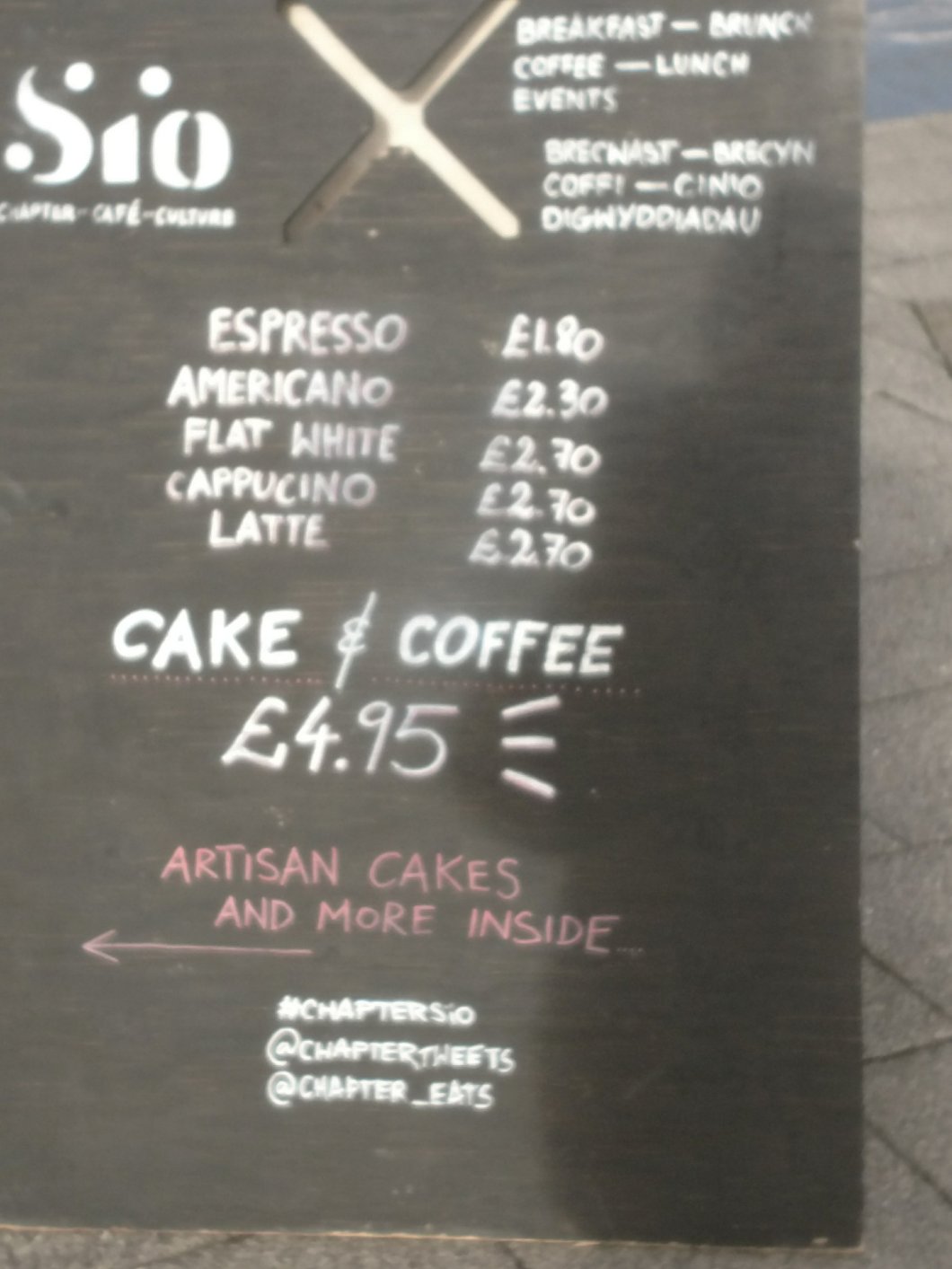 A refreshing autumnal (verging on wintery) day got me off my backside and away from my desk, with a route march from my office to the second outpost of Chapter, Caffi Sio, with a bit of an appetite.