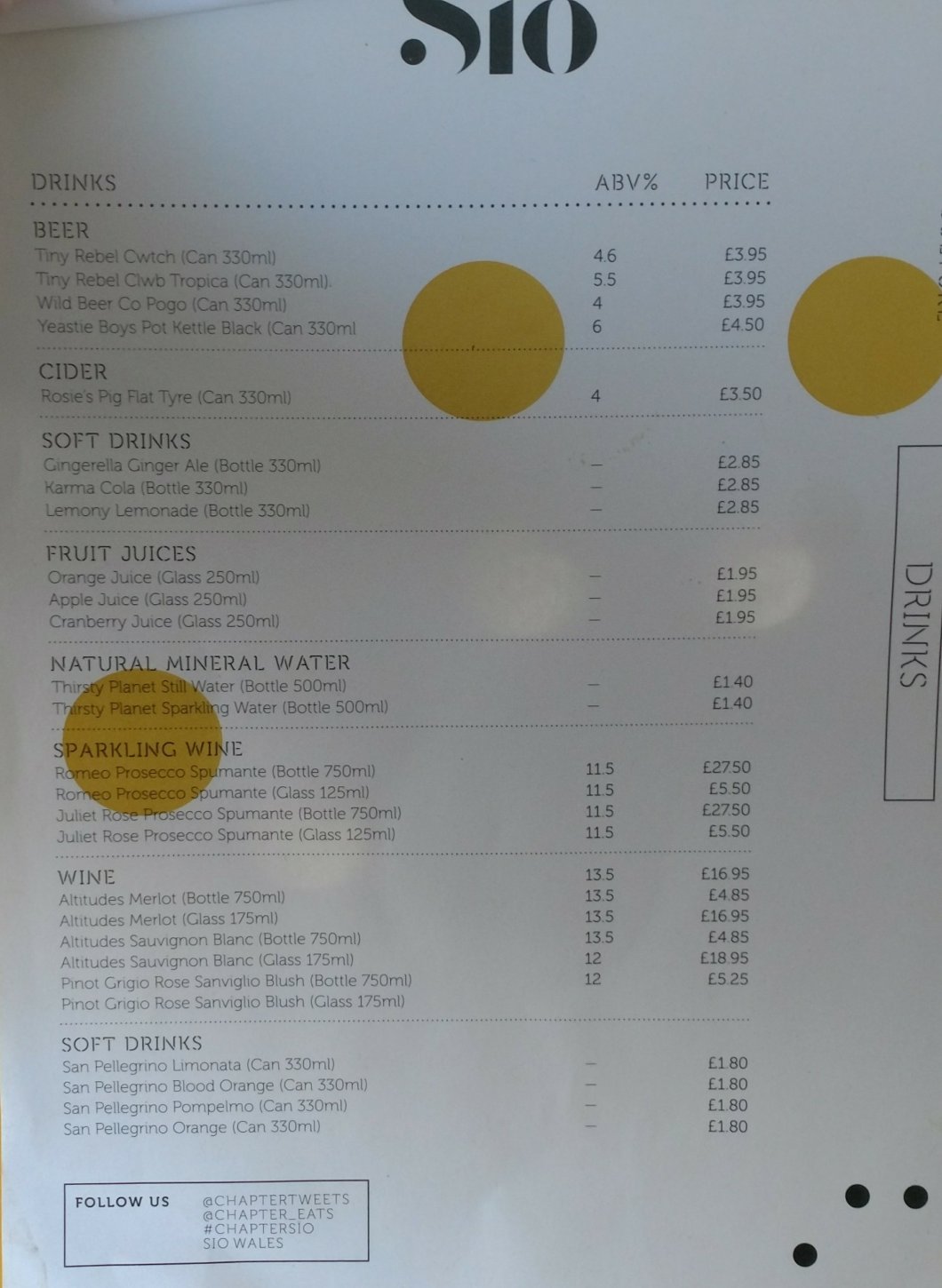 Soft drinks are interesting – I like very much both the gingerella and lemony lemonade on offer (nice to see somethings a bit different on the soft drinks front) and there is also various San Pellegrino drinks at not too hideous a price.