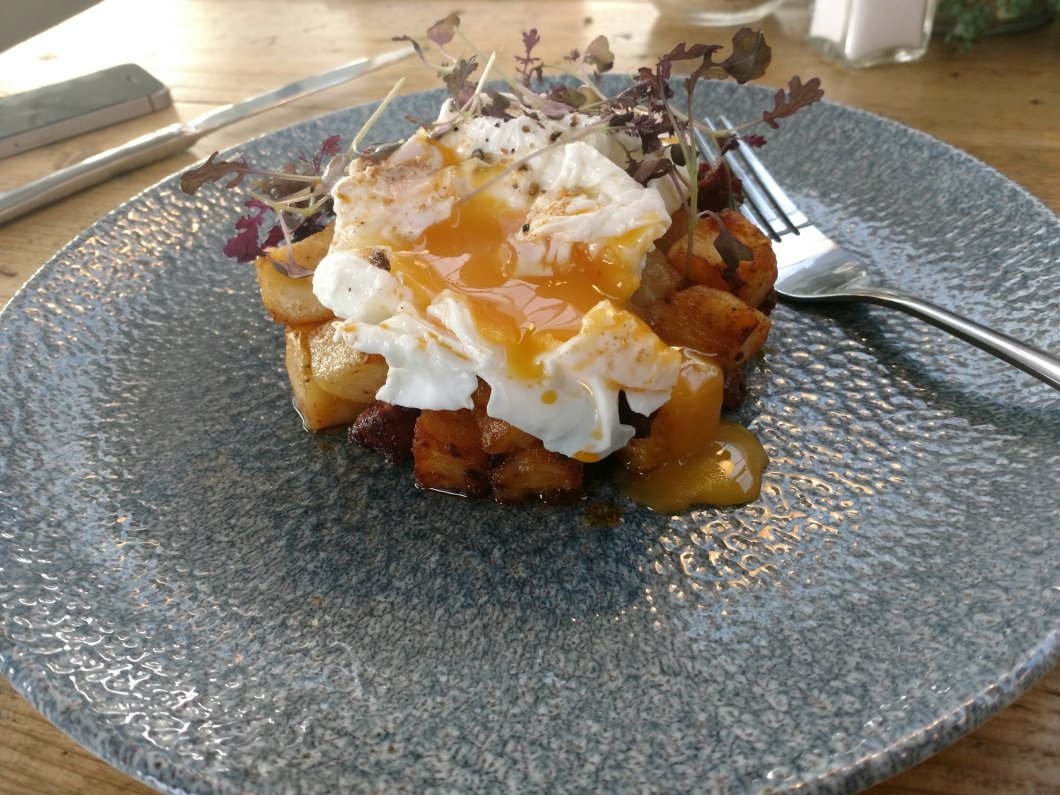The Caffi Sio’s hash was, I have to say, bang on the money. The two perfectly poached (rather than the more usual fried) eggs oozed glossy orange loveliness when gently prodded with a fork.