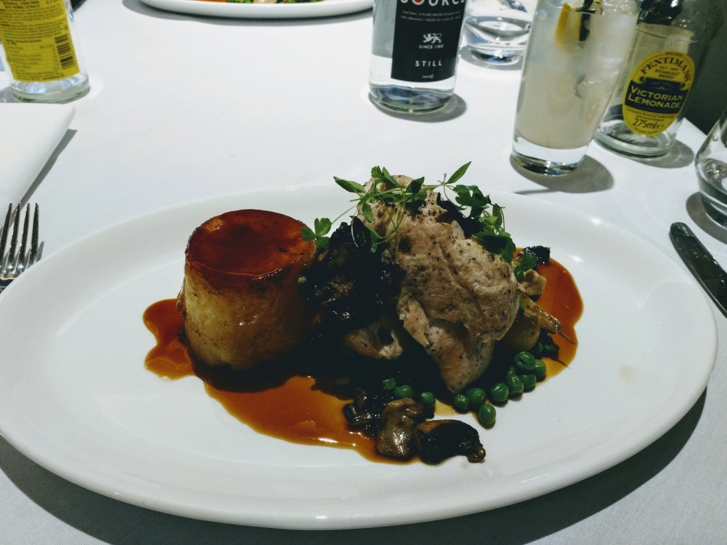 On to the mains, I decided on the roast chicken a la forestière (just shading the honey roast belly pork Marco Polo), having discounted the burger and the gnocchi as a touch tame sounding.