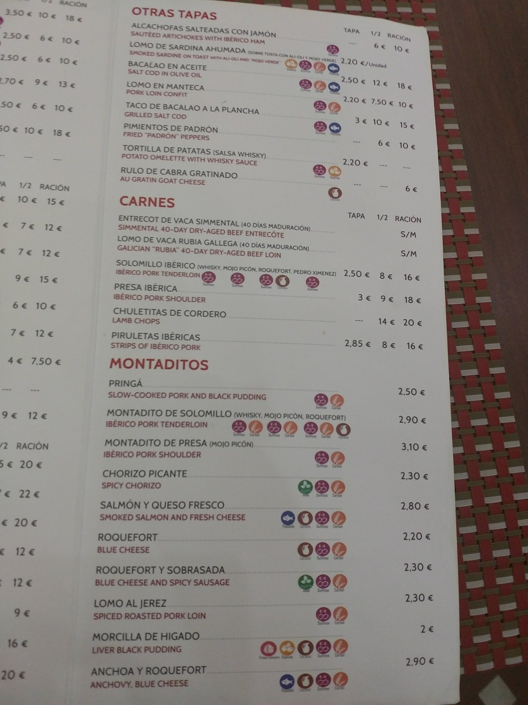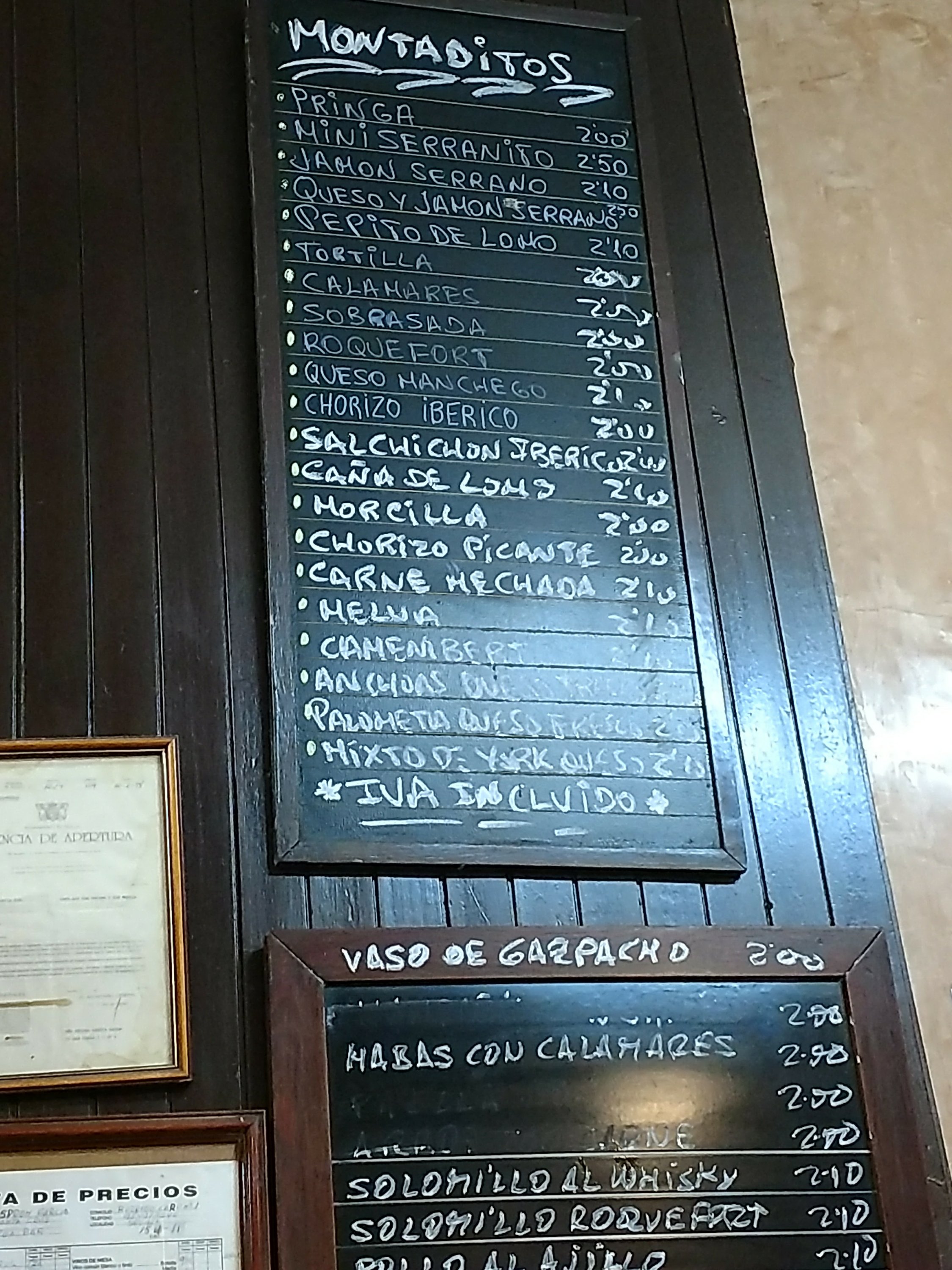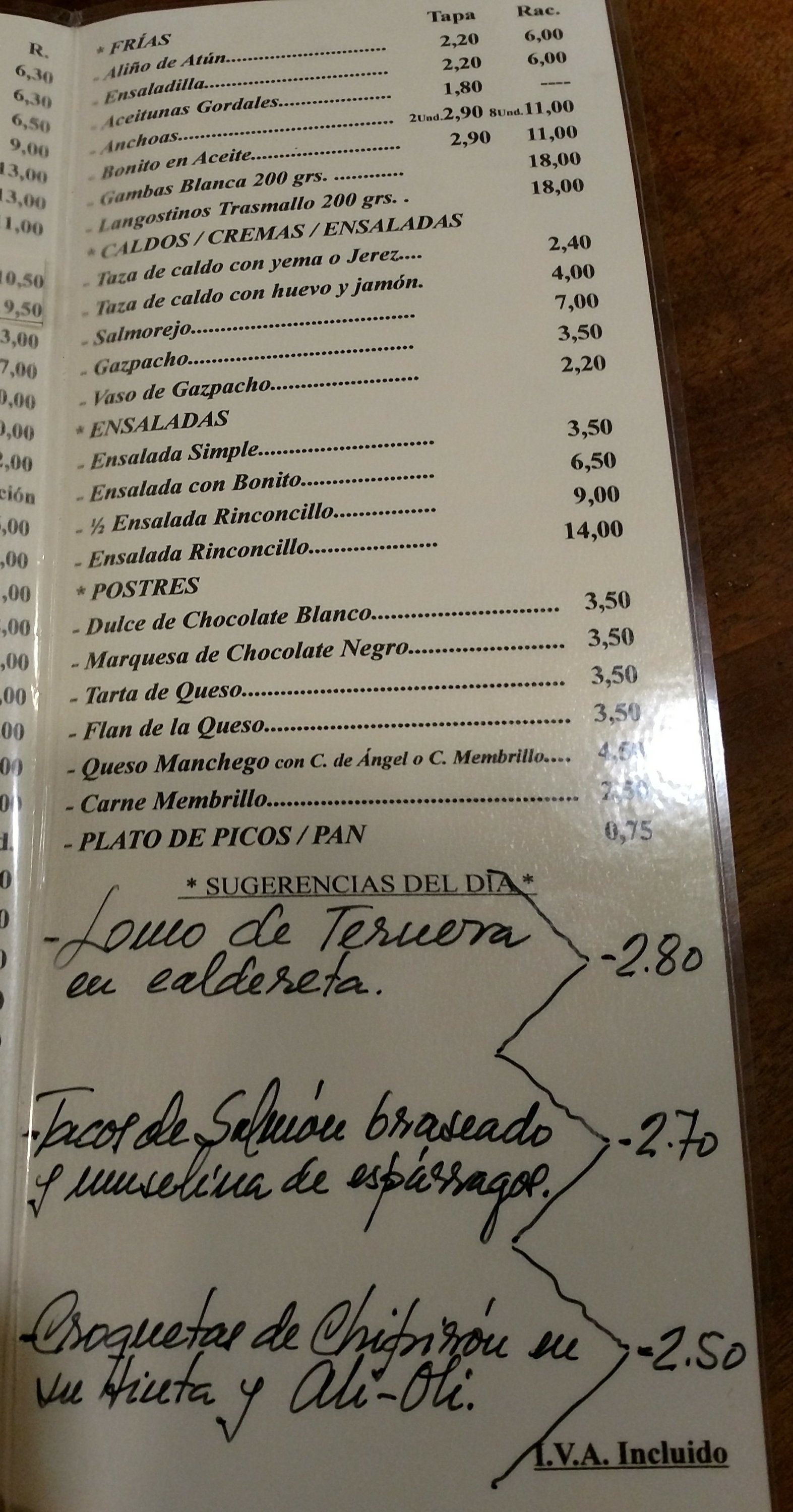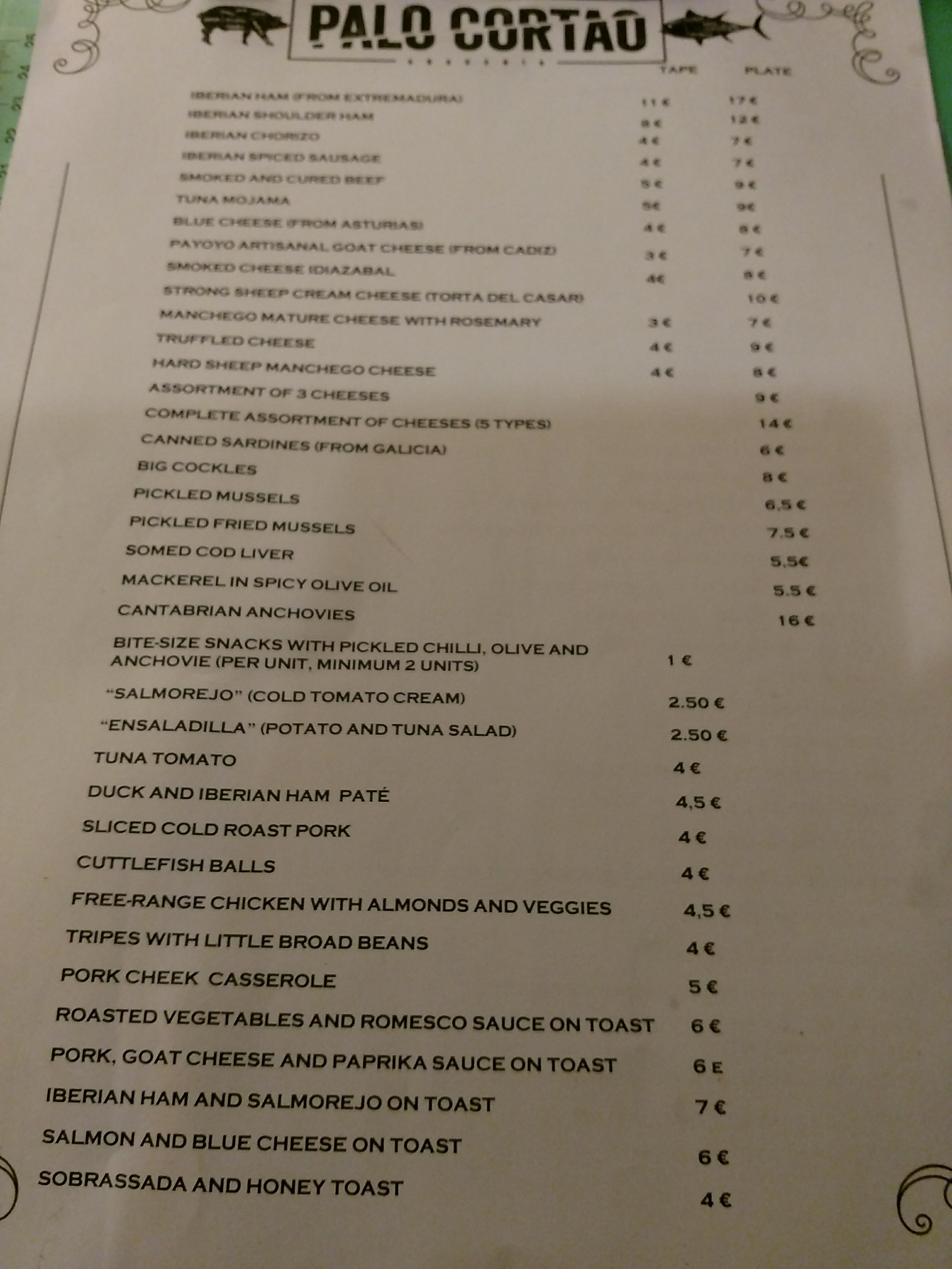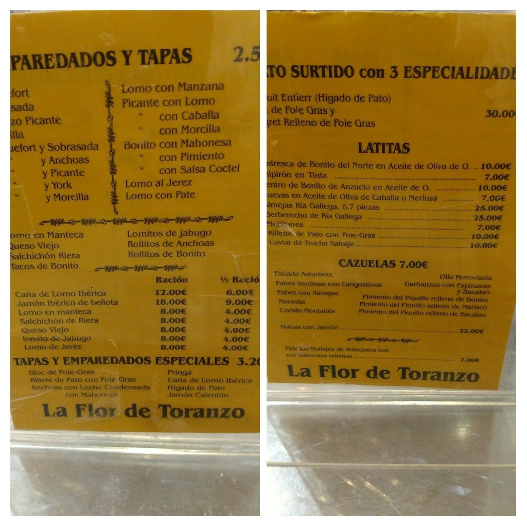 Food prices were also very reasonable (top quality cured meats are never cheap in Spain- but still very good value compared to UK price).