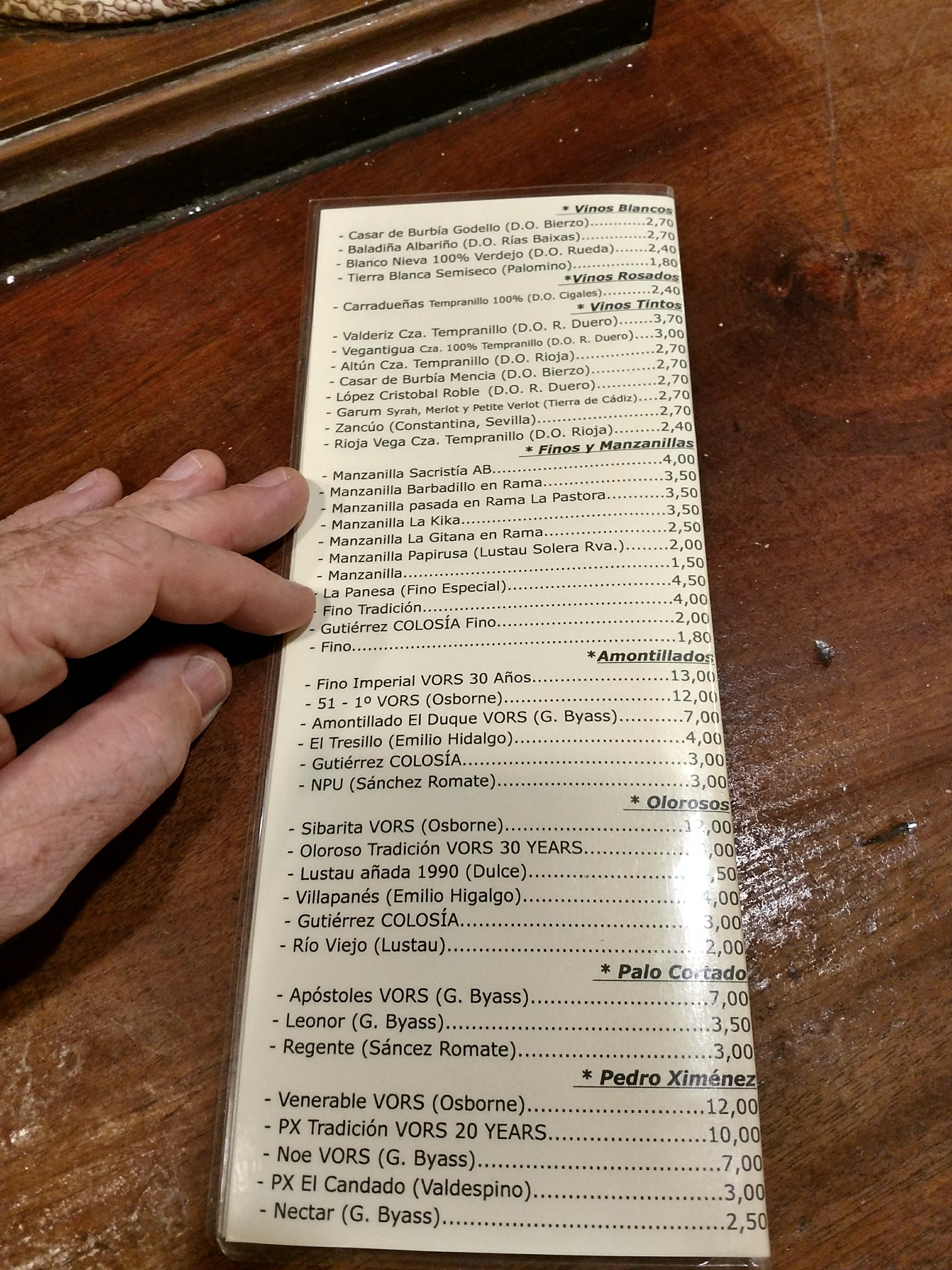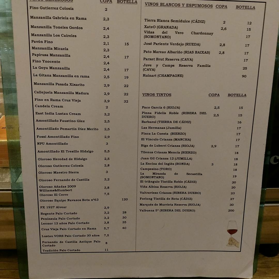 It had a fabulous list of top quality sherries at very reasonable prices starting at €1.50 for a standard manzanilla and going up to €13 for a Fino Imperial VORs amontillado.