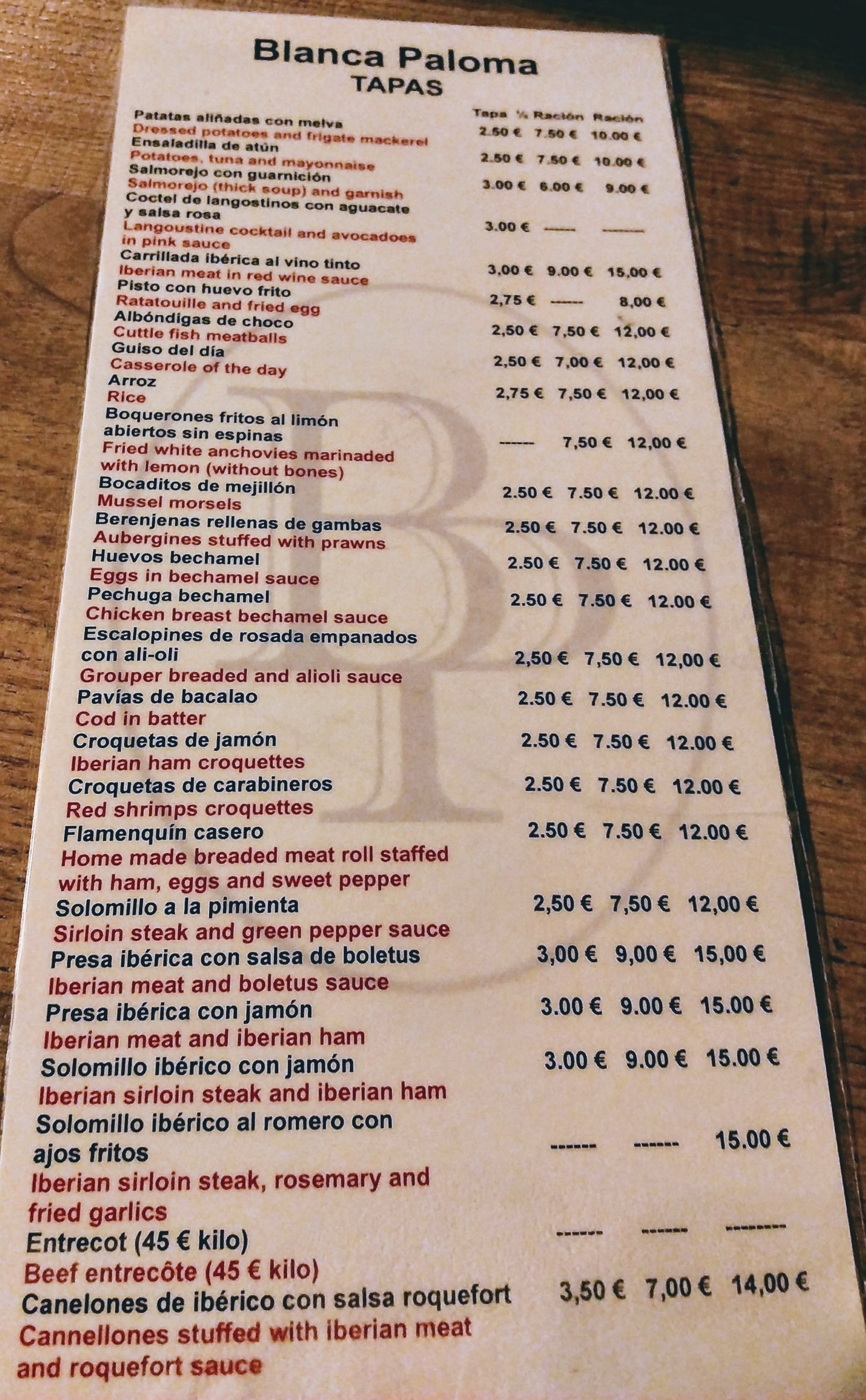 Across the river in the lovely Triana area of Sevilla is a small but decent enough tapas bar in the form of Blanco Paloma.