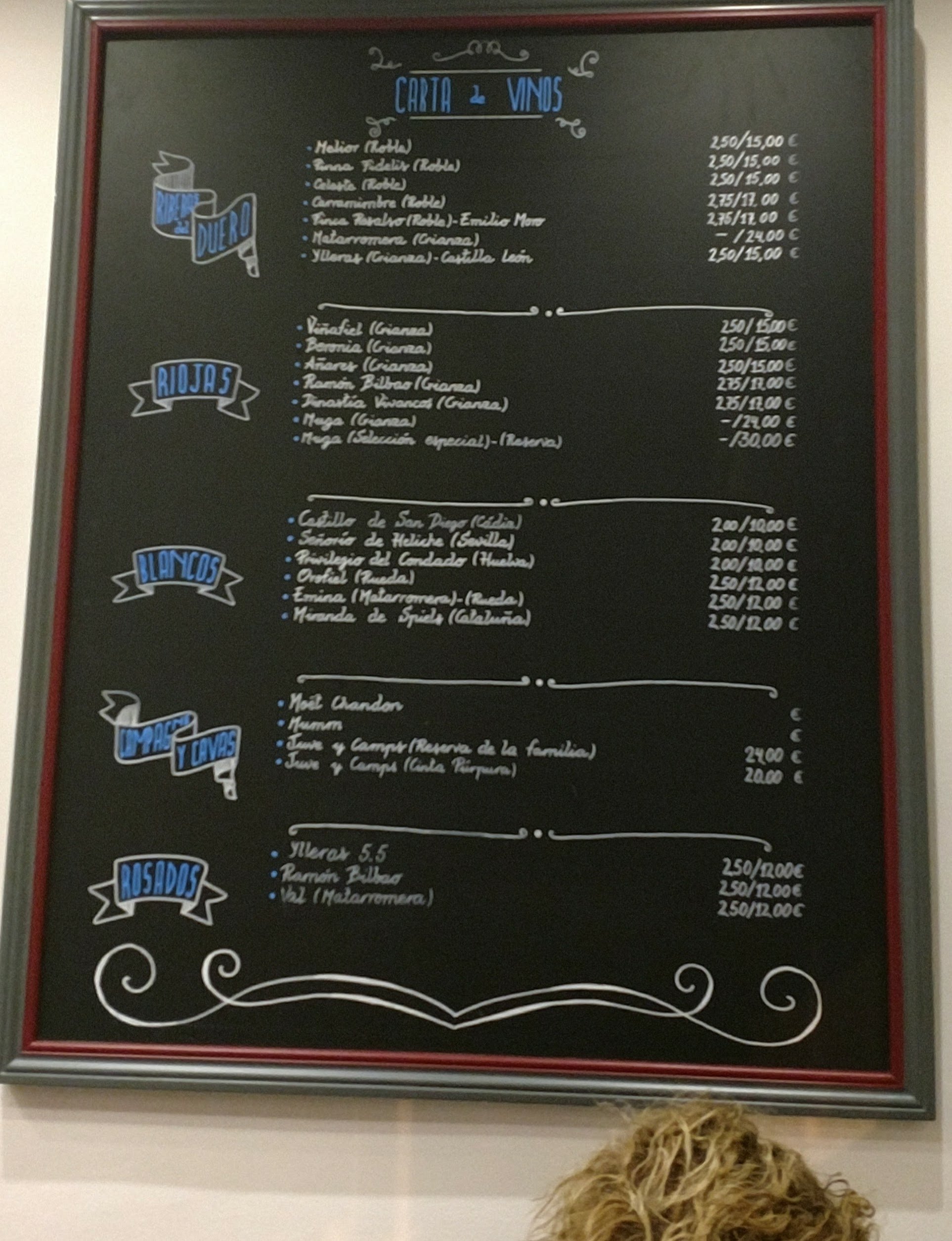The wines on offer are good and nicely priced (bar from the Mugas which always seem to be expensive, comparitively speaking, in Spain).