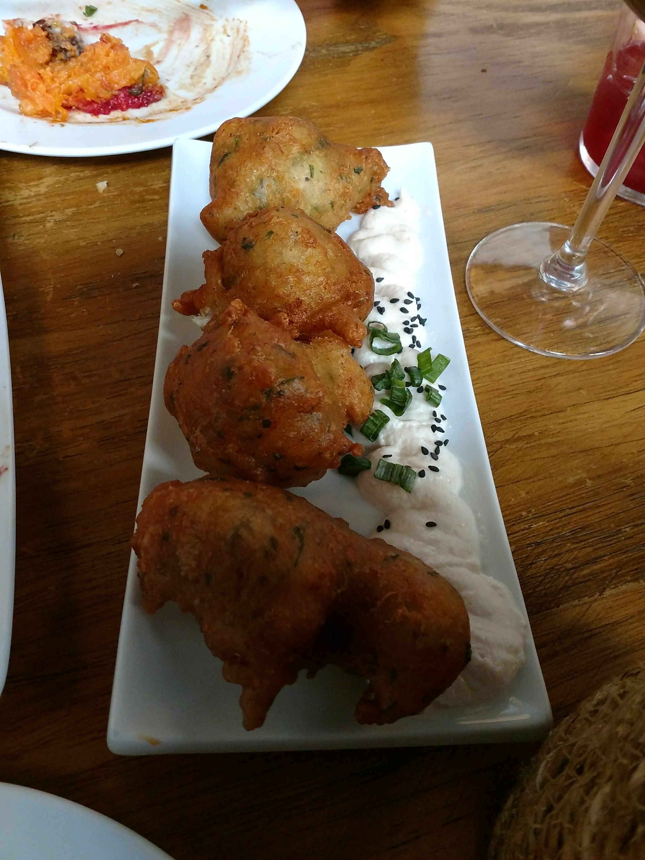 The stand out dishes we ordered (which were more than enough for two as tapas) were salt cod fitters with pear aoli (€3.20)