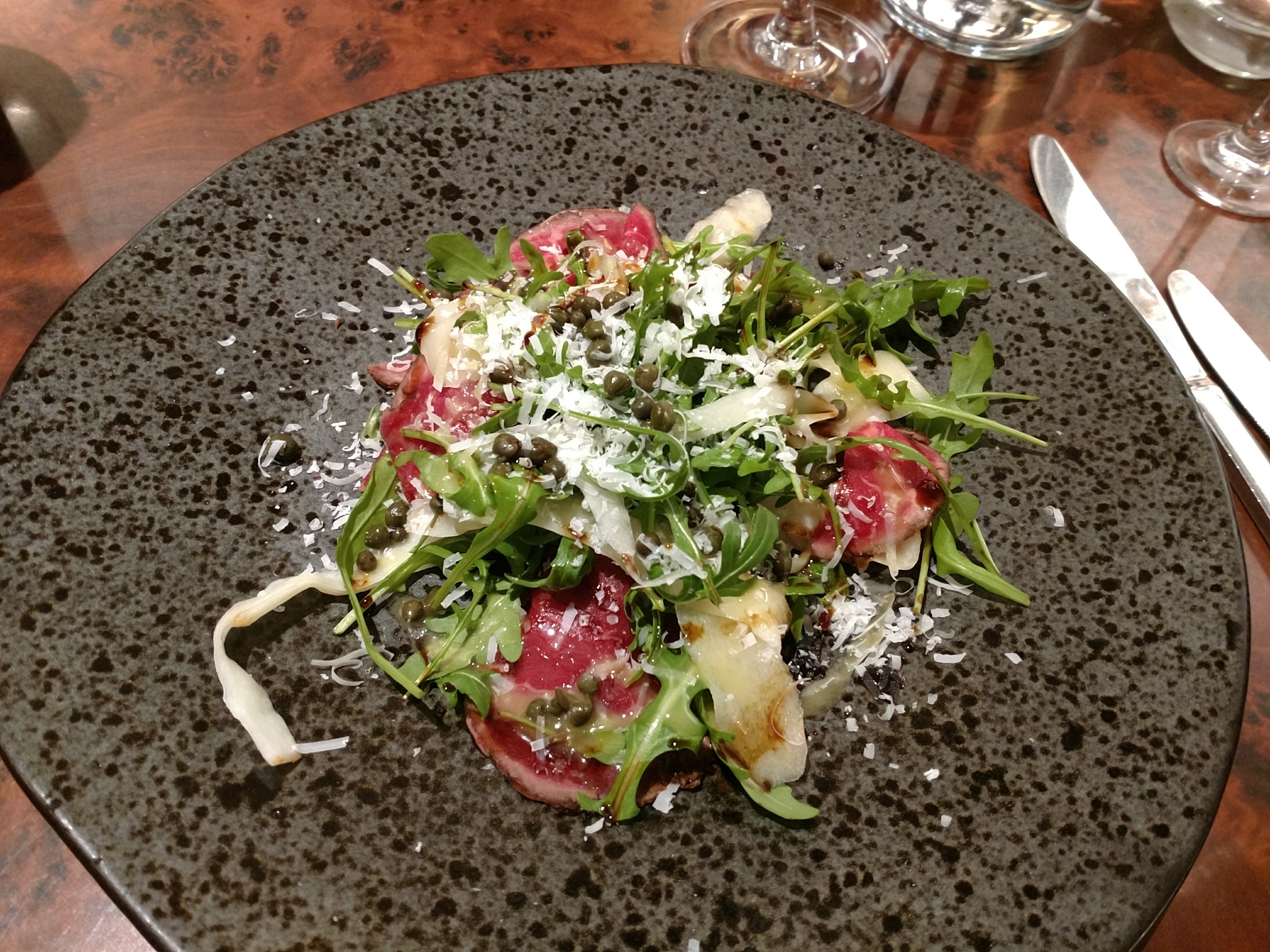 I decided on the carpaccio (£8) and was rather pleased with my choice