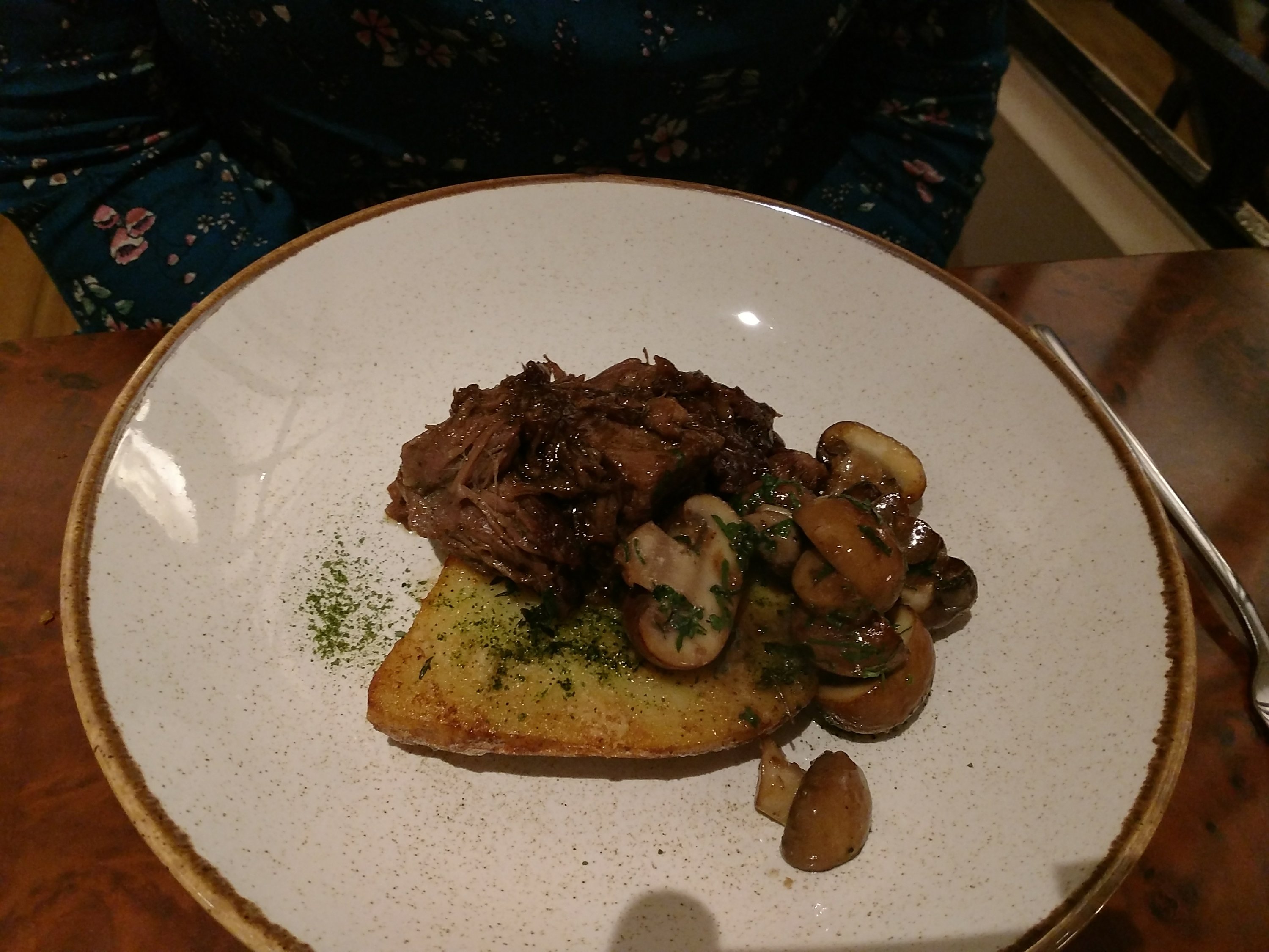 Mrs. SF went for another winter warmer in the form of the 22 hour beef cheek (£22). A beautifully flavoured and fall apart tender piece of meat, with a nicely cooked fondant potato (so easy to bugger these up) and the same garlic infused chestnut mushrooms as came with my veal.