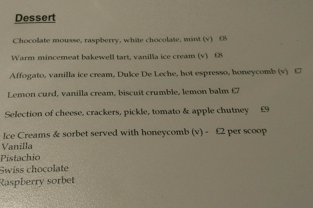 The list has a short, but perfectly nice, selection of reasonably priced red wines (the Lebanese Musar Jeune Rouge on the list here is a whopping £12 cheaper than it is on the list at Marco Pierre White’s Steakhouse in the City Centre). Nice to see a couple of pinot noirs on the list, including one from Patagonia.