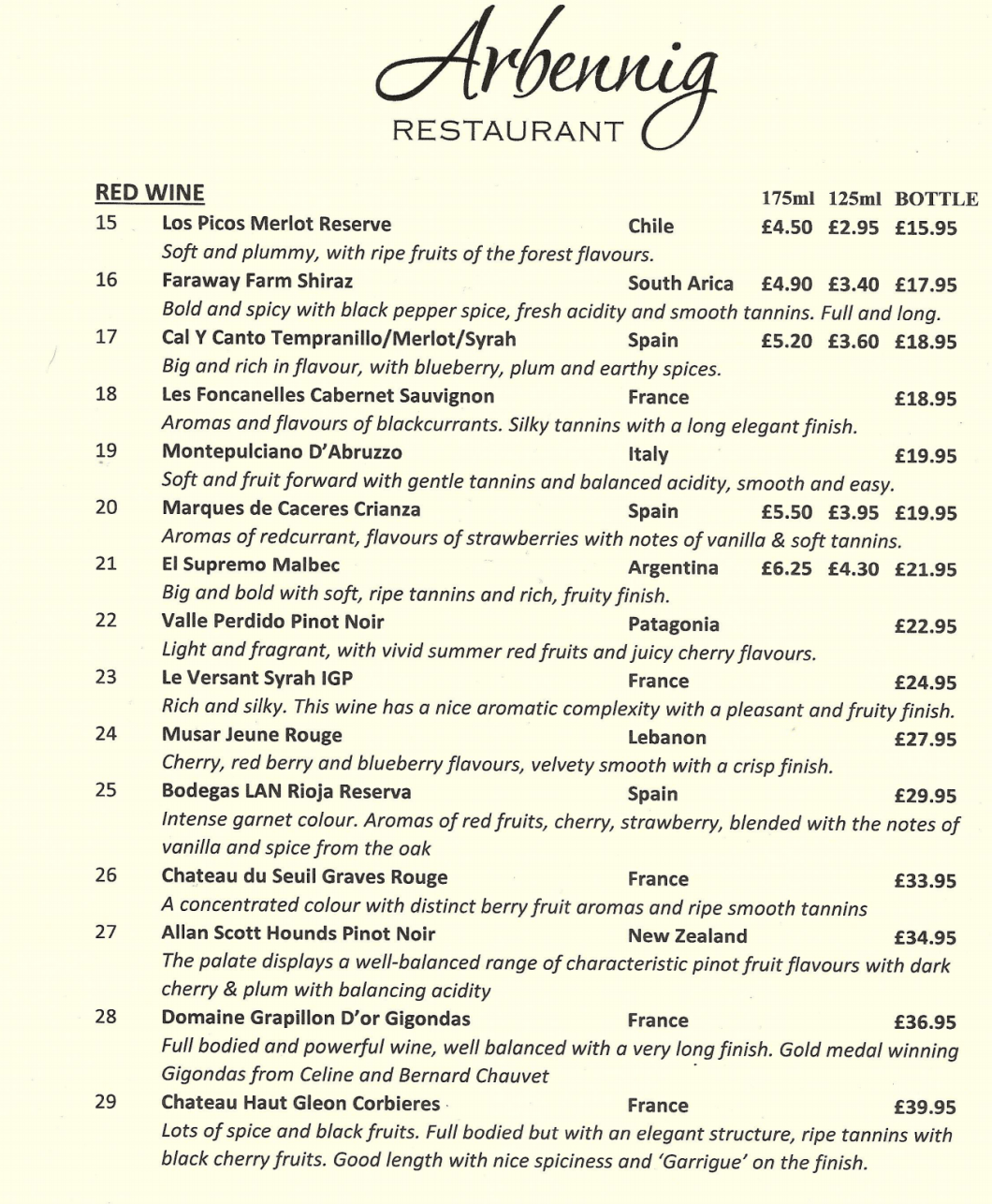 Some stuff from Australia (odd there is not a single Aussie red on the list – a good Barossa Valley Shiraz – would be fab with the beef cheek) and perhaps some Portguese reds (very underrated and currently excellent value) would add nicely to the list. Italy (a country with so much diversity on the wine front) also seems a little unrepresented in the red department, with just a Montepulciano D’Abruzza.