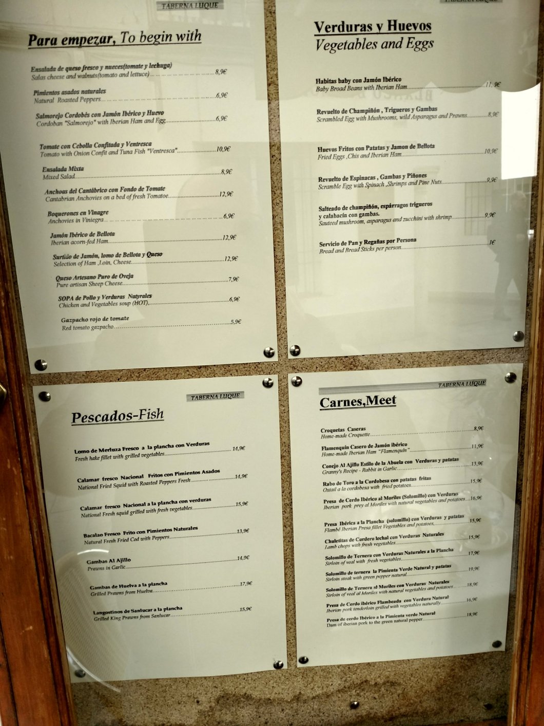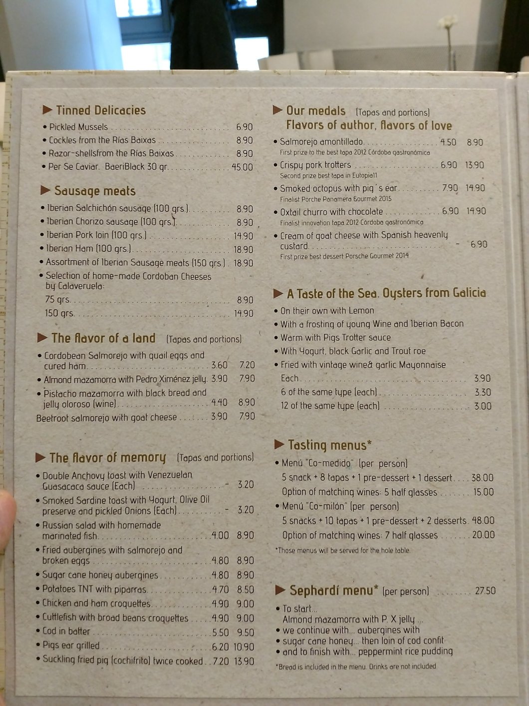 Prices here are a little above the average in Córdoba, with tapas being between €3.50 (for salmorejo) and €8.90 (latter for razor clams).