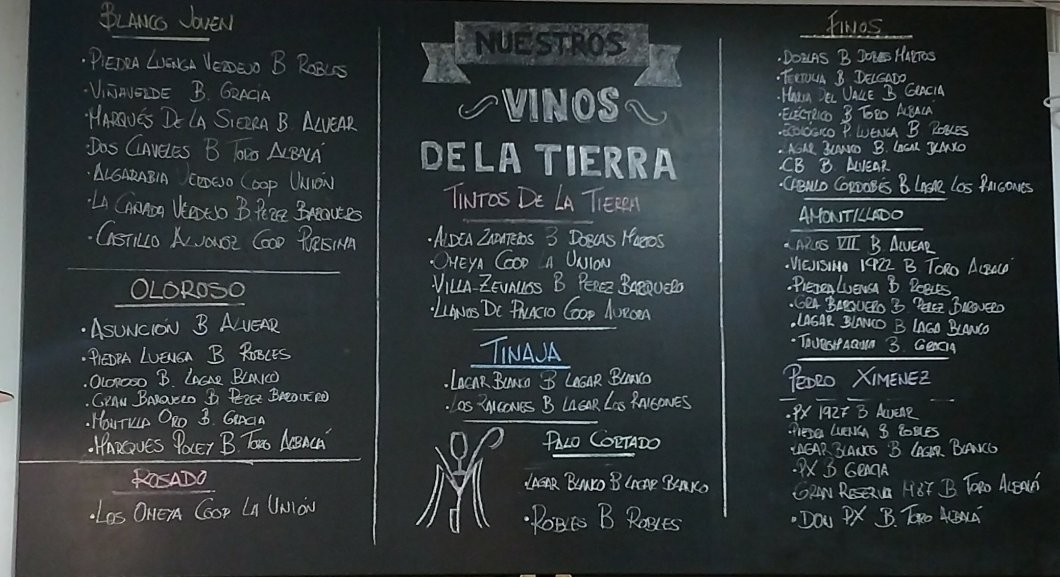 Nice selection of booze is also on offer, including local Montilla – Moriles wines