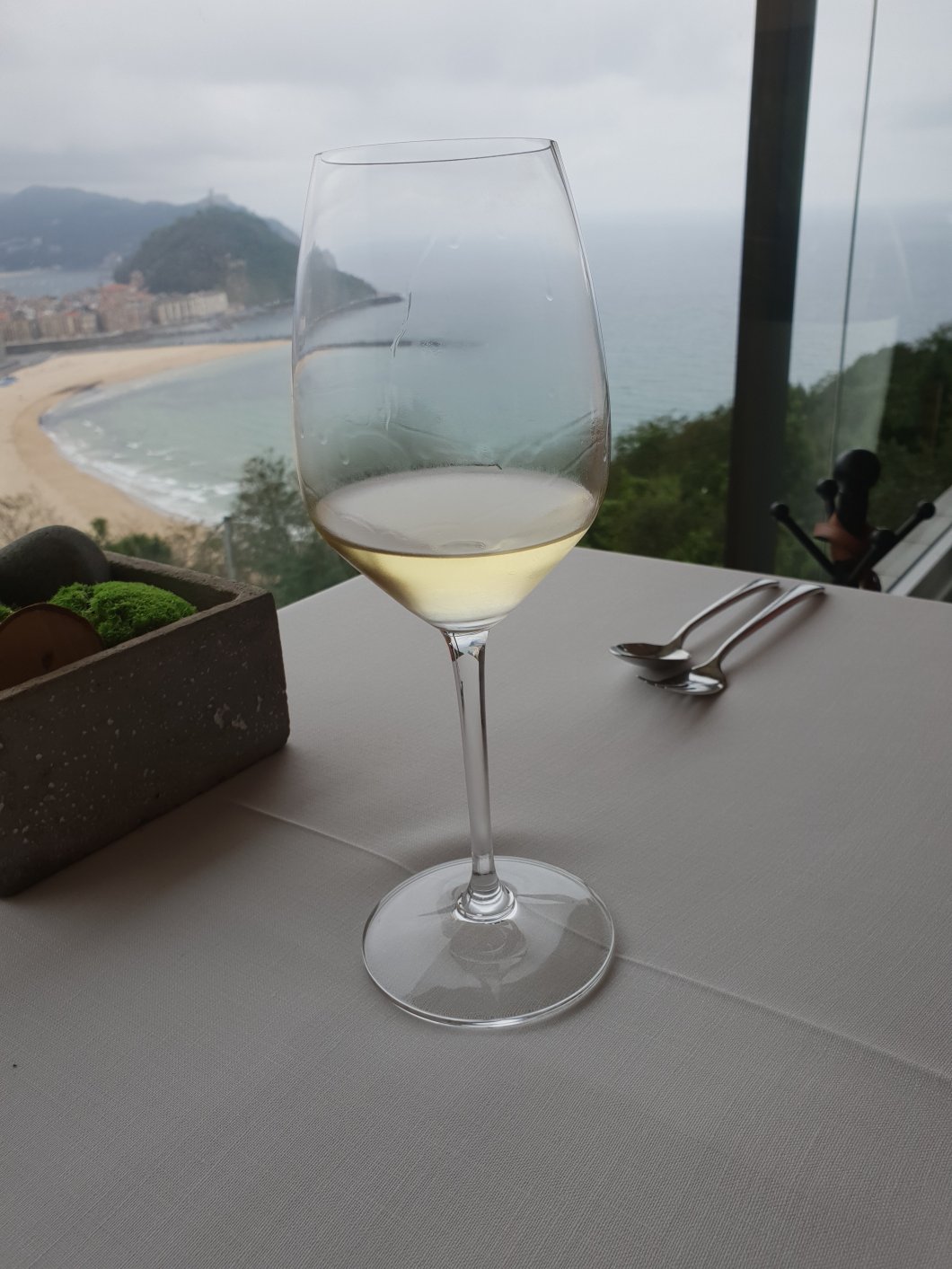 Deceptive close as the crow flies (I reckon you could zip wire down to the beach in about 20 seconds), 1 Michelin starred Mirador de Ulia is a 15 minute €10 ish cab ride from the City centre. Don’t even think about walking and this advice is from someone who averages 10 miles a day walking whilst in Donostia.