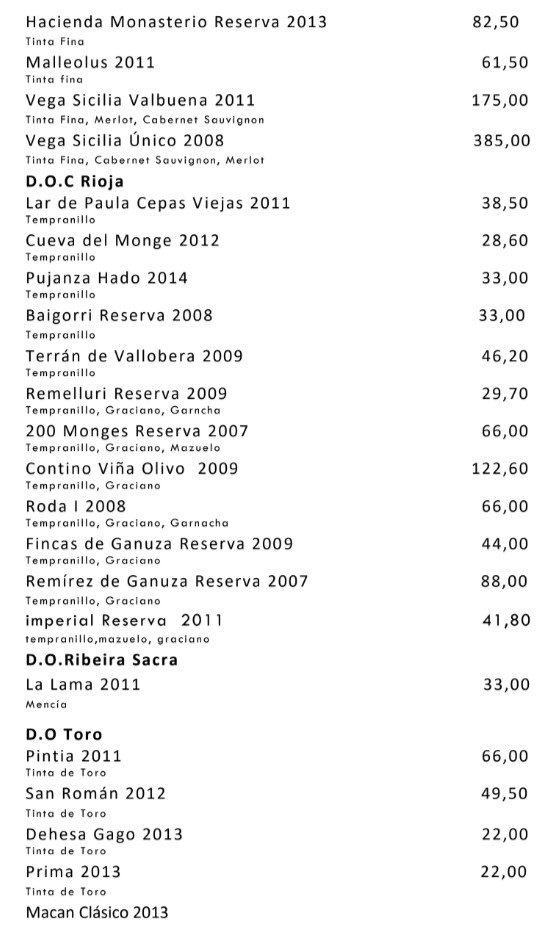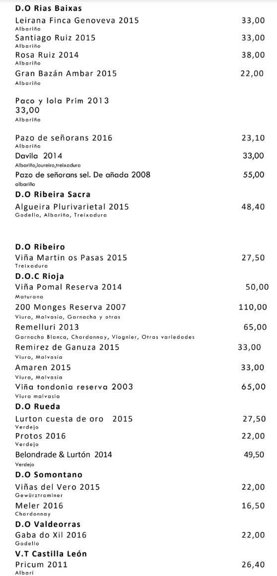 The culture in Spain of not excessively marking up wine extends to the top end Michelin star gaffs and this place is no exception with mark ups of well below 100% on most wines. This makes such a difference to the final price and (lesson for UK restaurants here) tends to lead to me moving up the gears in terms of the wine I choose (i.e. I spend more as I feel happy to buy a more expensive wine).