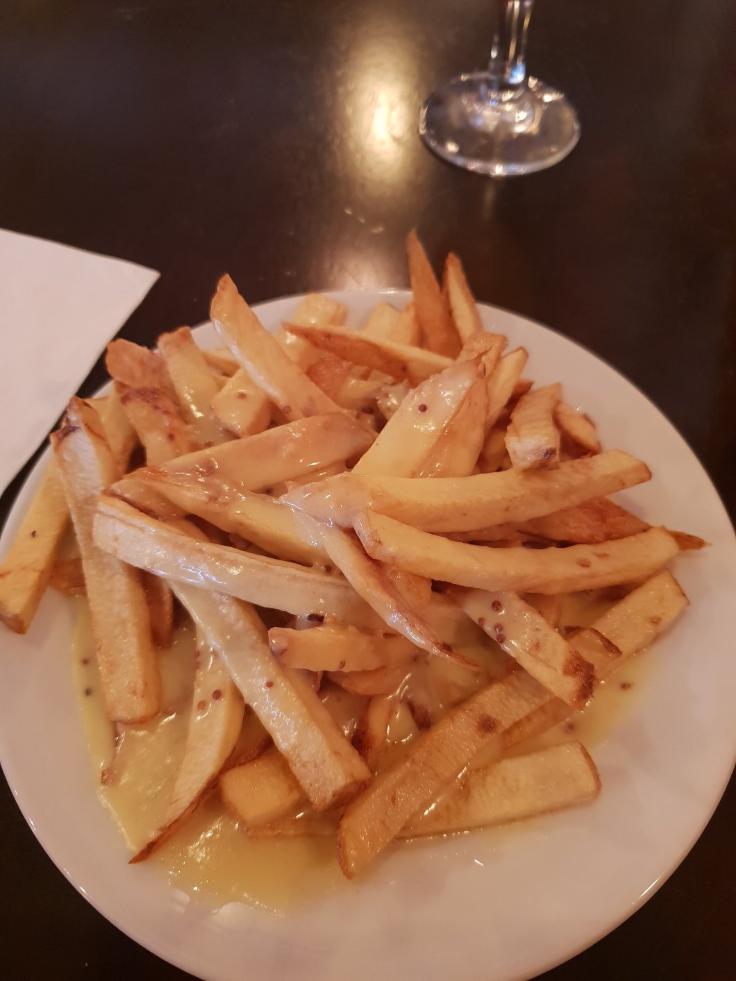 Lovely tangy mustard infused cheese sauce on hot crispy chips – oh yes!!