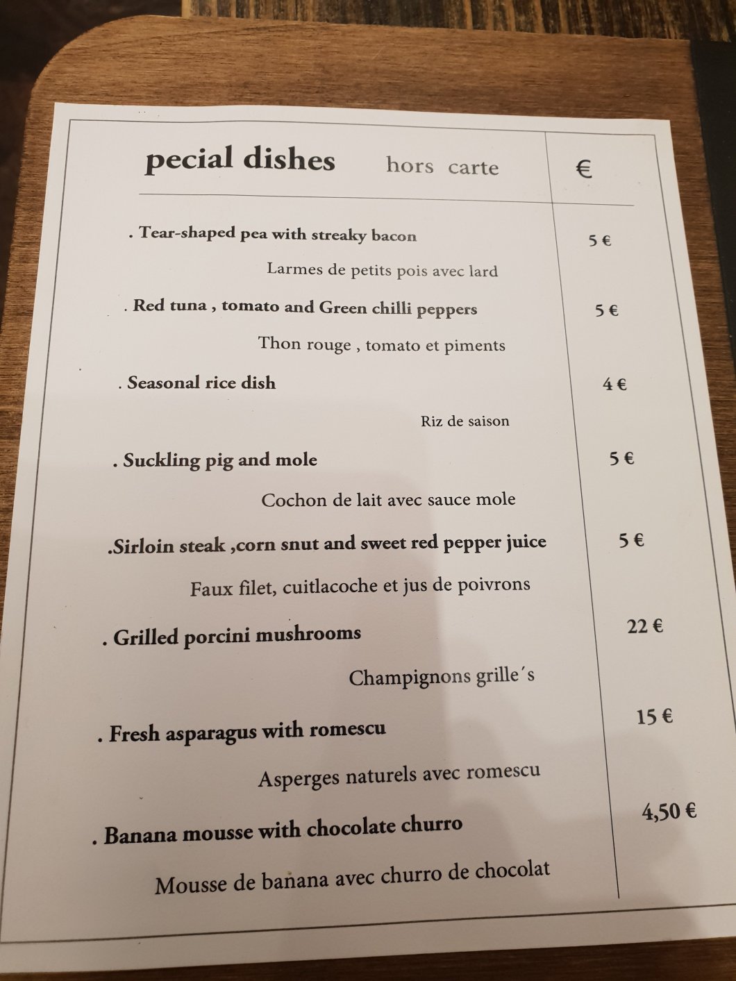 For the more adventurous there is ” Callos y Morros” (tripe and snouts), which even I passed on.