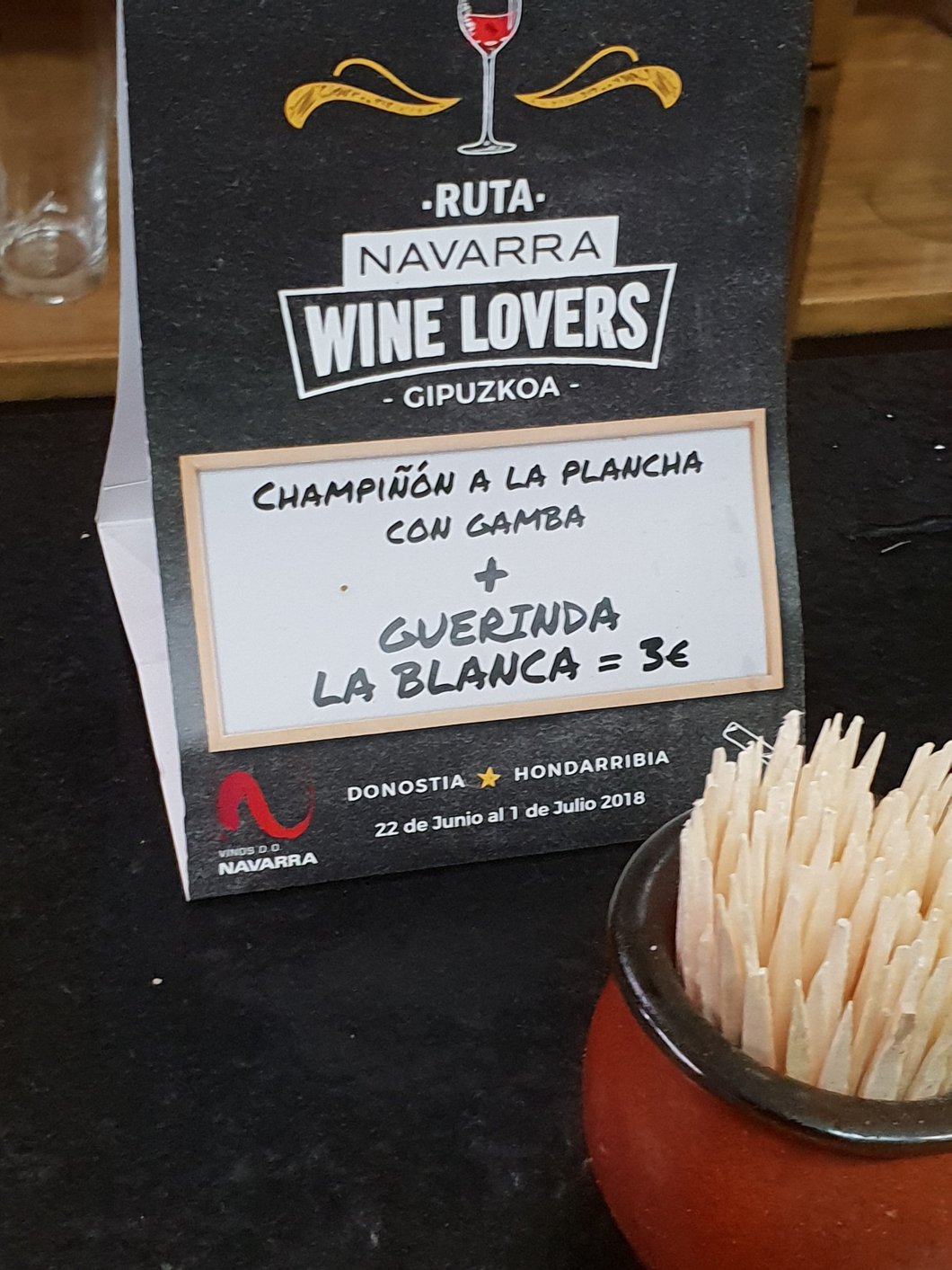 Here a mushroom and prawn number on la plancha came with a glass of white from Navarra for a paltry €3.