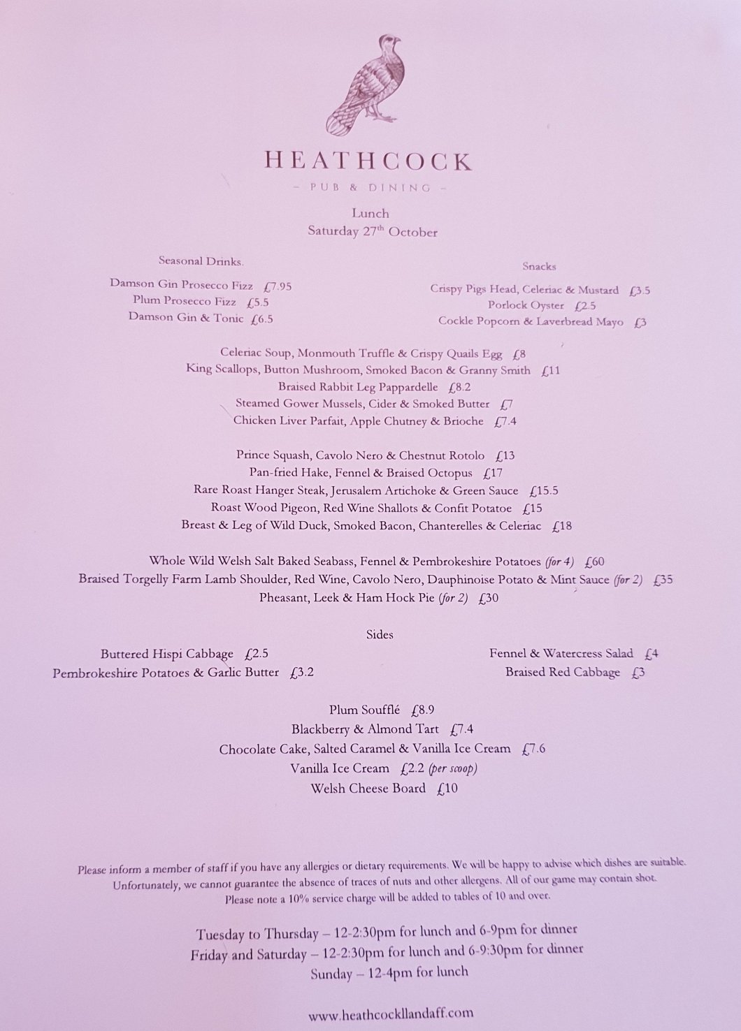 As a resident of Llandaff in Cardiff, I was beyond happy when I found out that the people behind the highly acclaimed Hare and Hounds pub in Aberthin (very much a dining pub) were taking over the Heathcock Pub in Llandaff village (actually a City in itself due to its Cathedral).