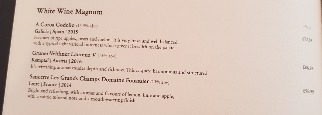 Great to see a a godello, a gruner and a proper riesling on the list. All great food wines.