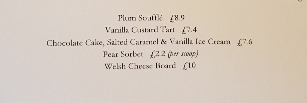 My eyes were immediately drawn to the plum souffle (£8.90). Brave dish to do in a pub, with the risk of disaster high.